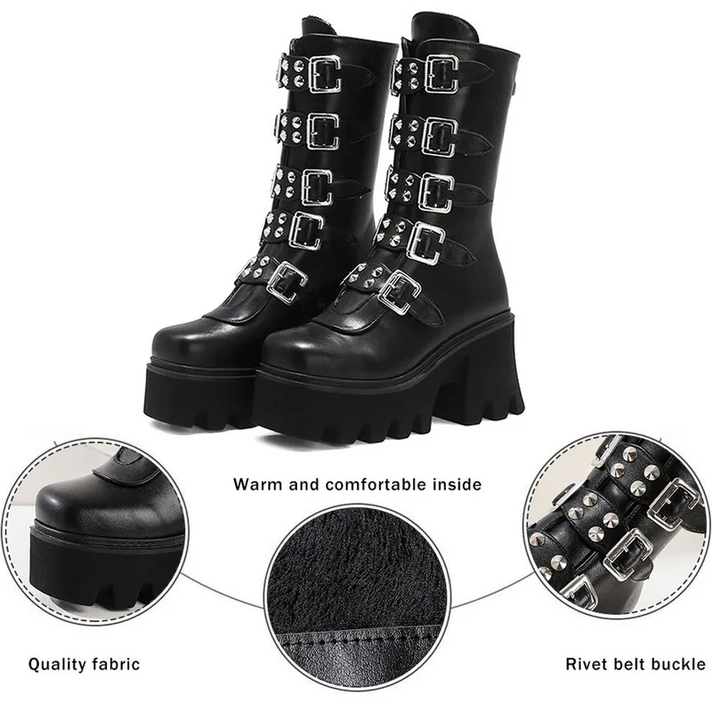 Женские ботинки в готическом стиле, ботильоны на платформе и высоко...