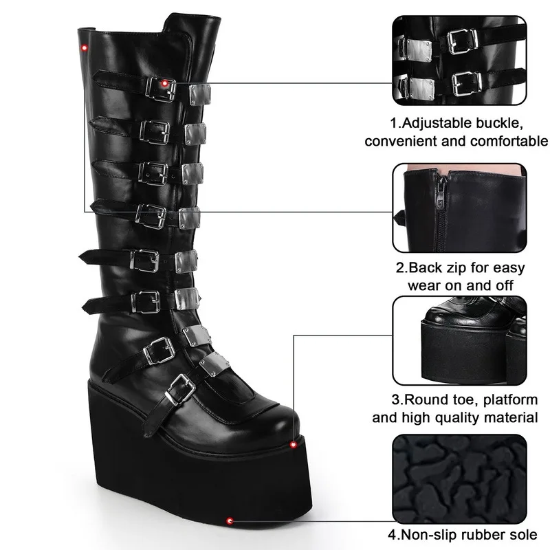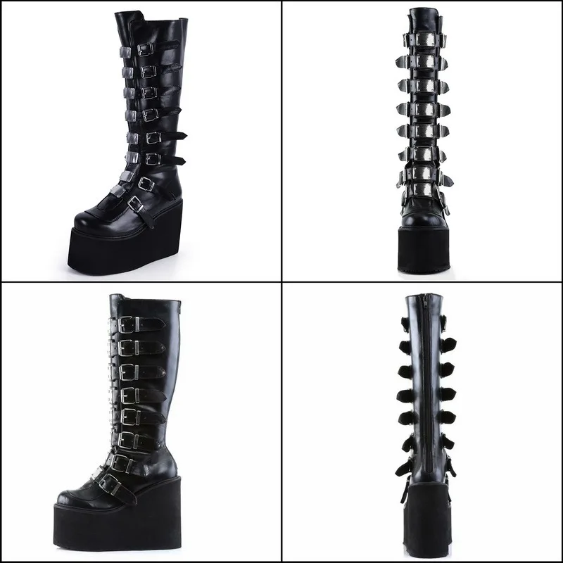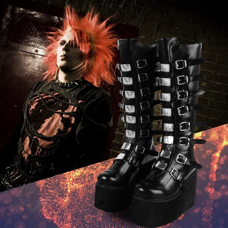 Женские ботинки до бедра, черные ботинки на платформе, готическая обувь для косплея, 2021