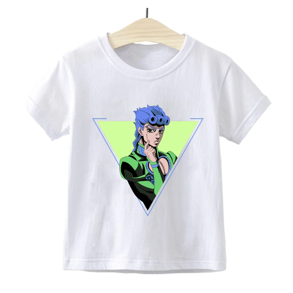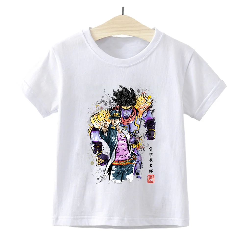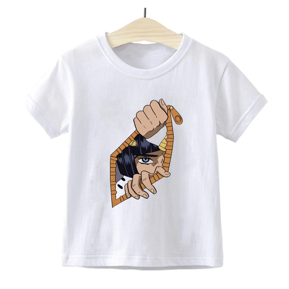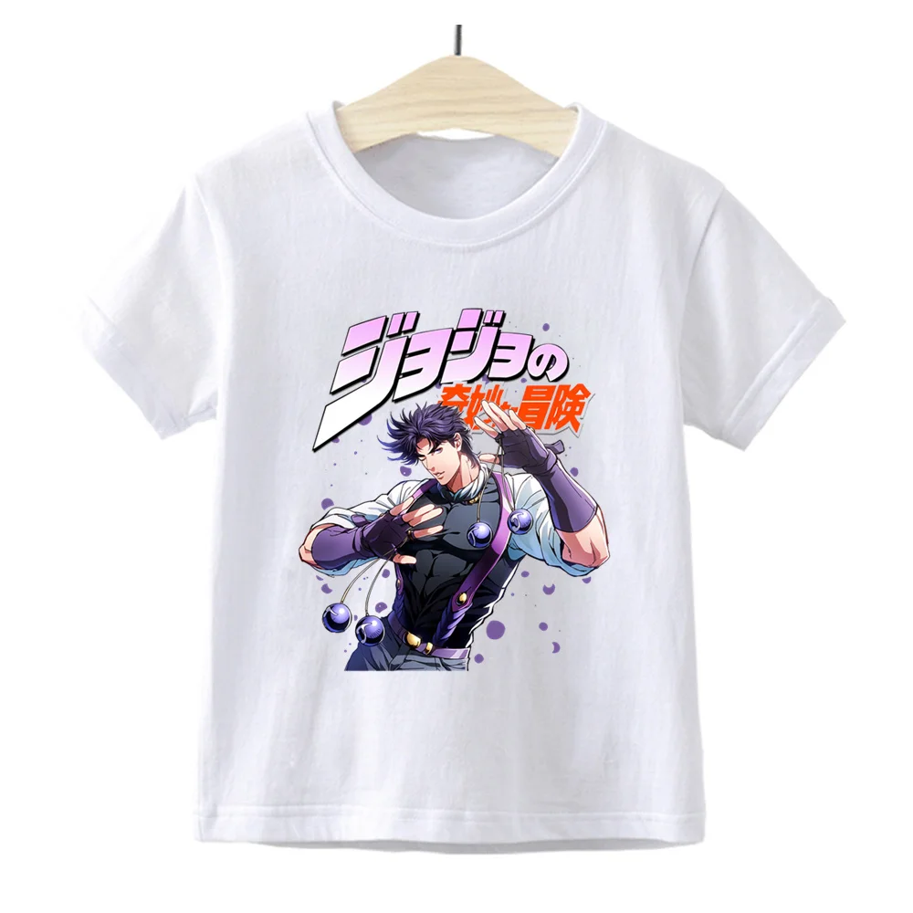 Летняя забавная мультяшная футболка, Детская футболка Джоджо Невероятные приключения, детские футболки с графическим принтом в стиле Харадзюку, модные топы для мальчиков и девочек, YKP180
