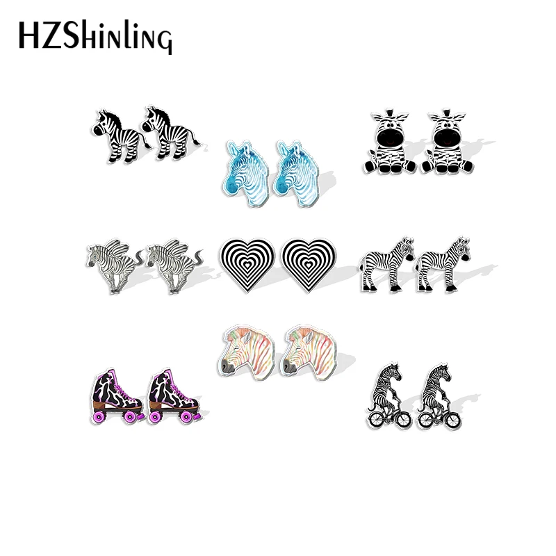 Новинка 2021, серьги-гвоздики в виде зебры из мультфильма, черные и белые серьги в полоску из акриловой смолы, эпоксидная смола, фотоэлемент для девушек