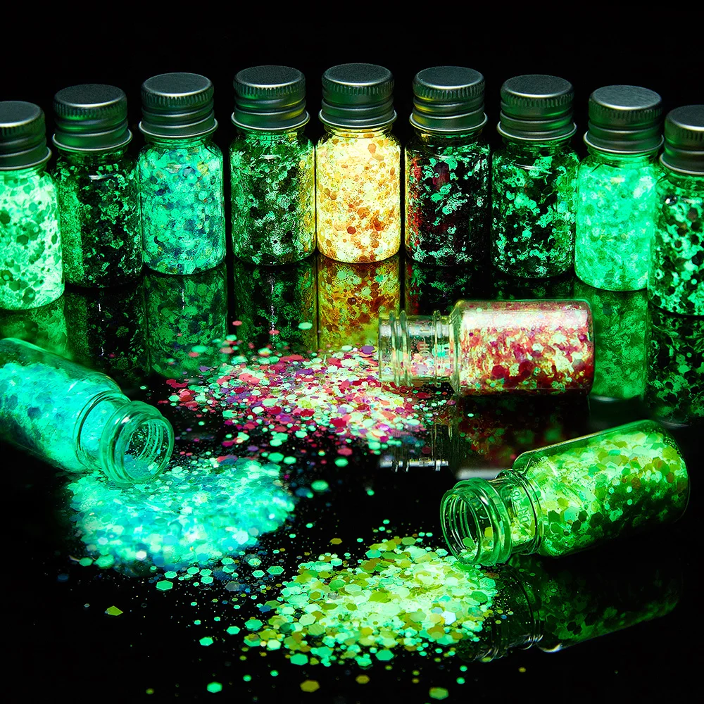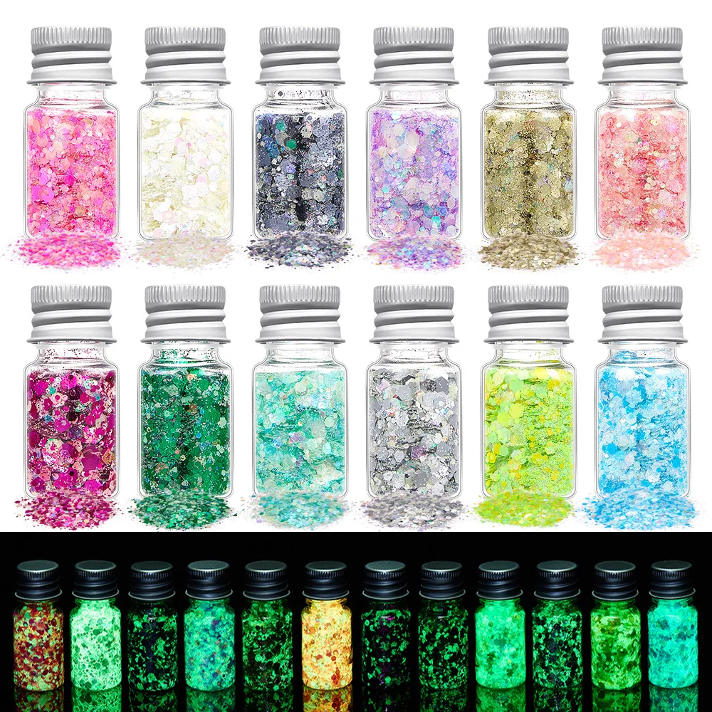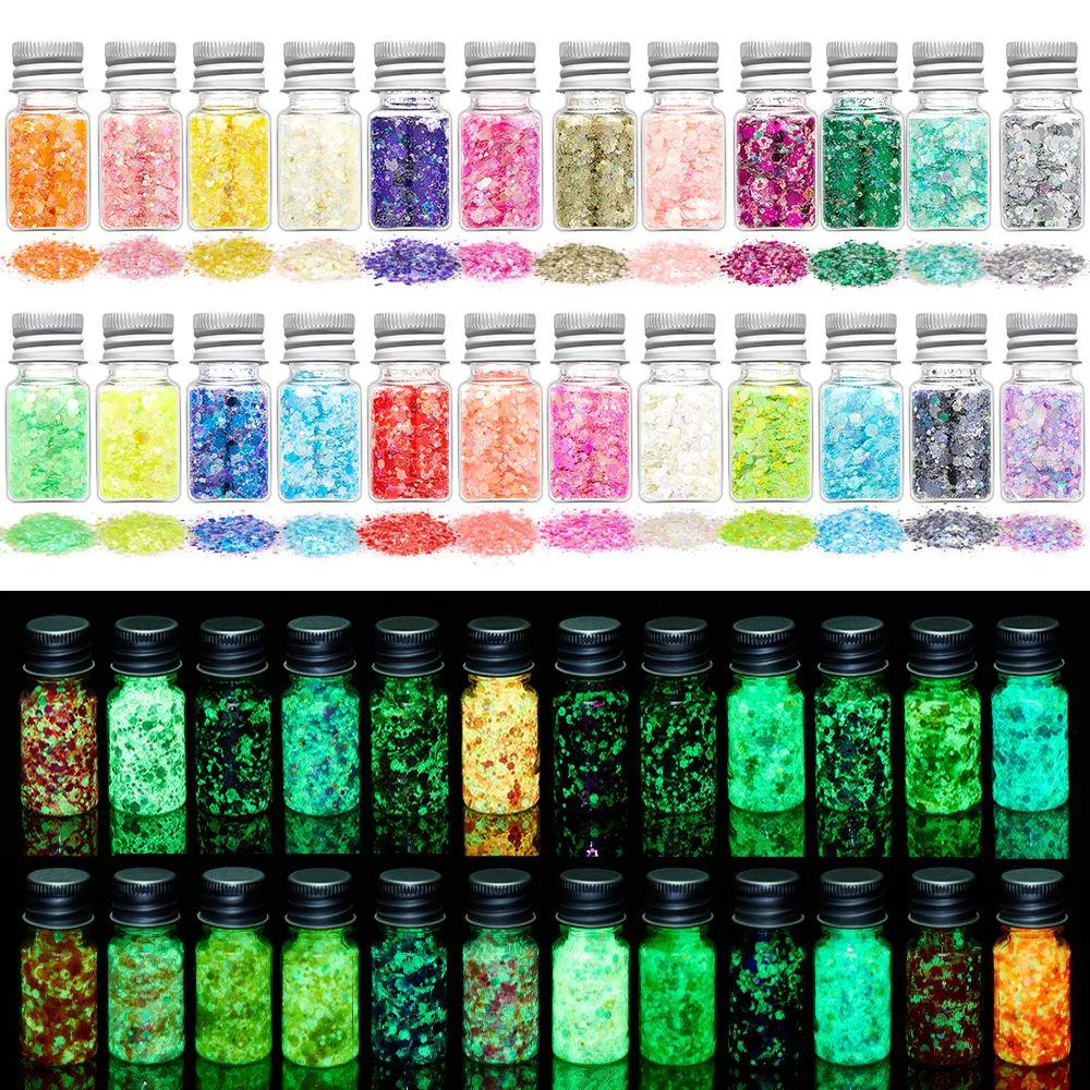 Светящиеся объемные смешанные блестки, 24 цвета, блестящий косметический голографический набор блесток для поделок, полимерные ремесла, дизайн ногтей