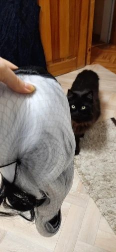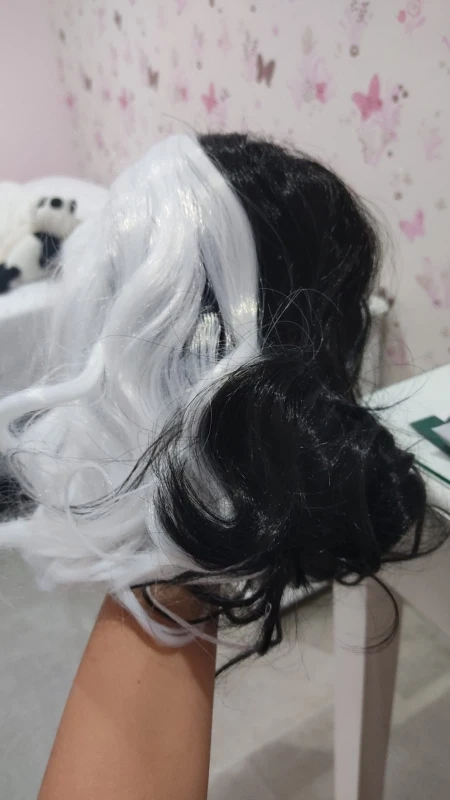 Парик длиннее чем на фото и белая сторона просвечивает, надеюсь, что мне удастся исправить это накрутив его.
