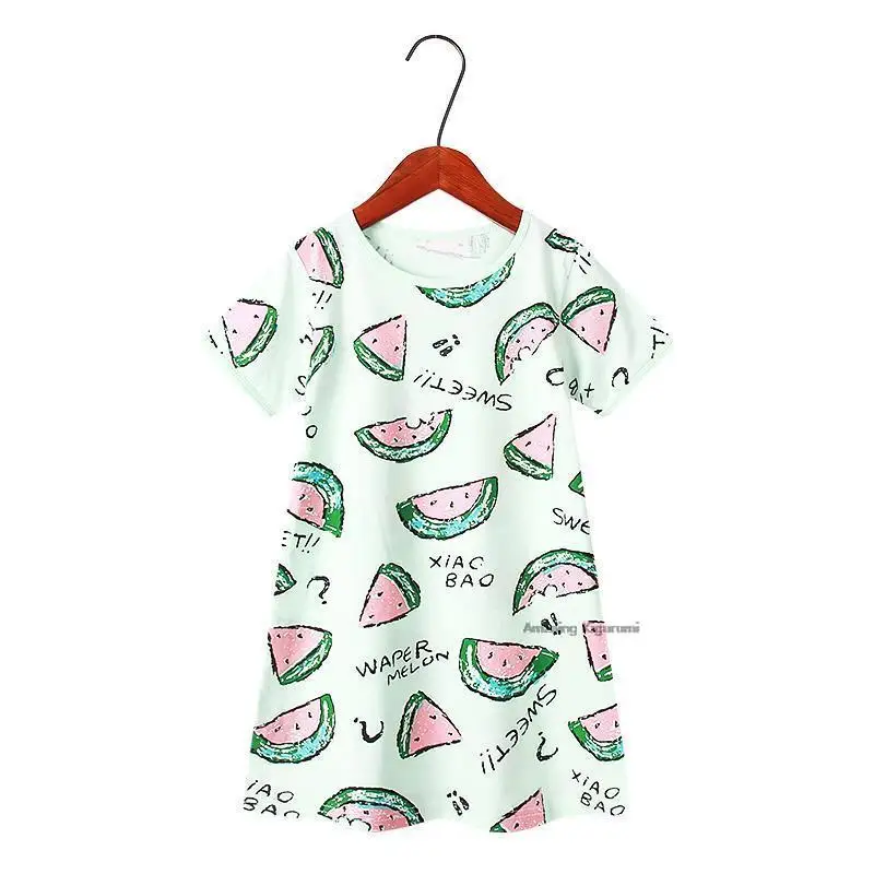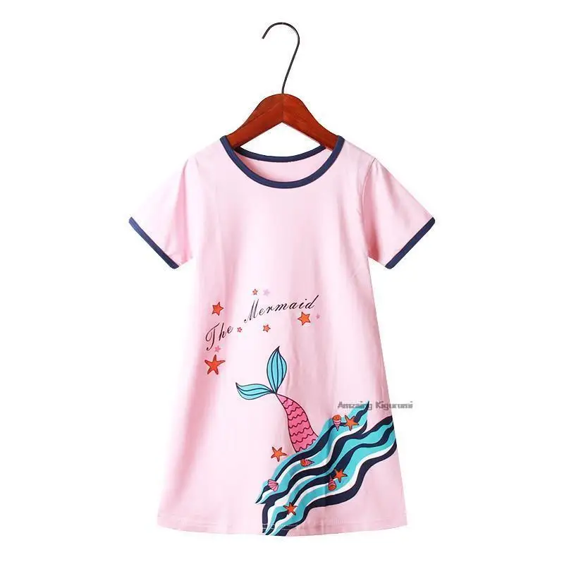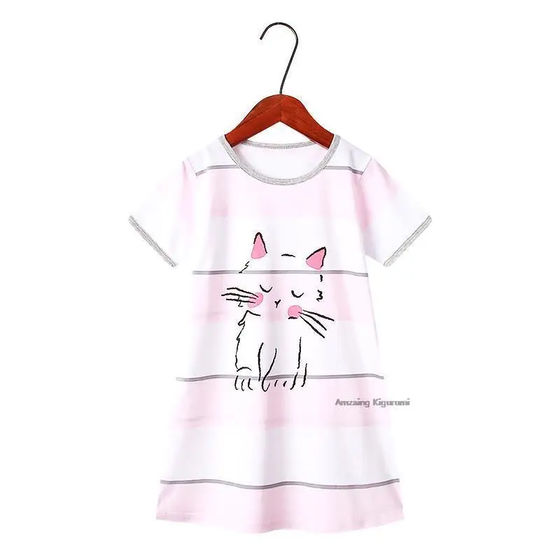 Летняя Детская оригинальная Пижама, Детская ночная рубашка с коротким рукавом, 100% хлопок, детское спальное платье для ребенка, платье для девочки