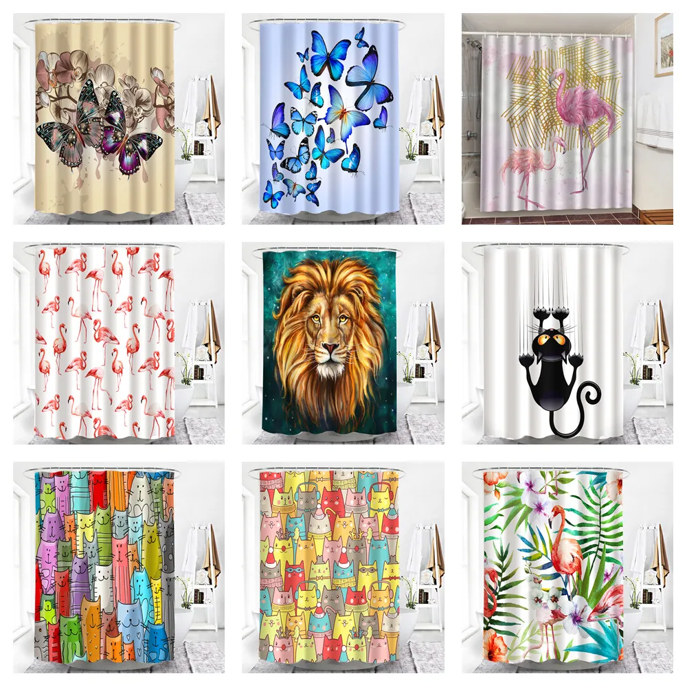 Забавные кошки с принтом кавайные занавески для душа для ванной 3D лев леопард мощность полиэстер ванная комната туалет Кортины с пластиковыми крючками