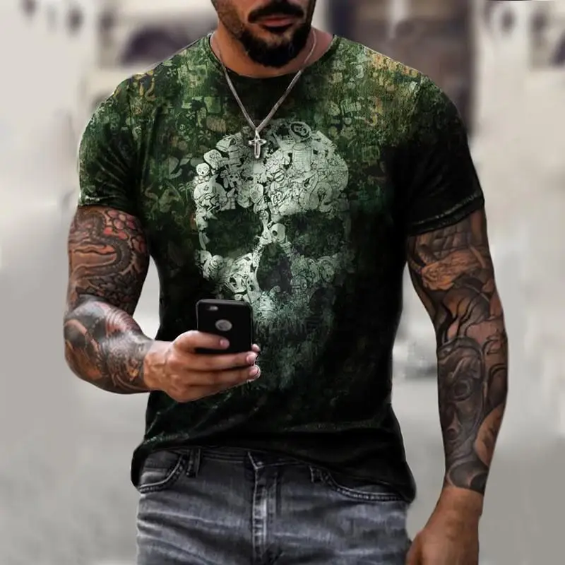 Футболка мужская оверсайз с 3D-принтом черепа, модная повседневная ...