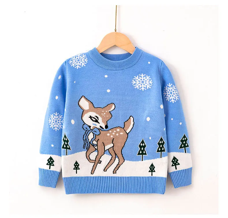 Детские свитера, для девочек Рождественские Зимние пуловеры с рисунками животных из мультфильмов для маленьких мальчиков в английском стиле; Вязаная милый Джерси для детей ясельного возраста 2021 осень-зима