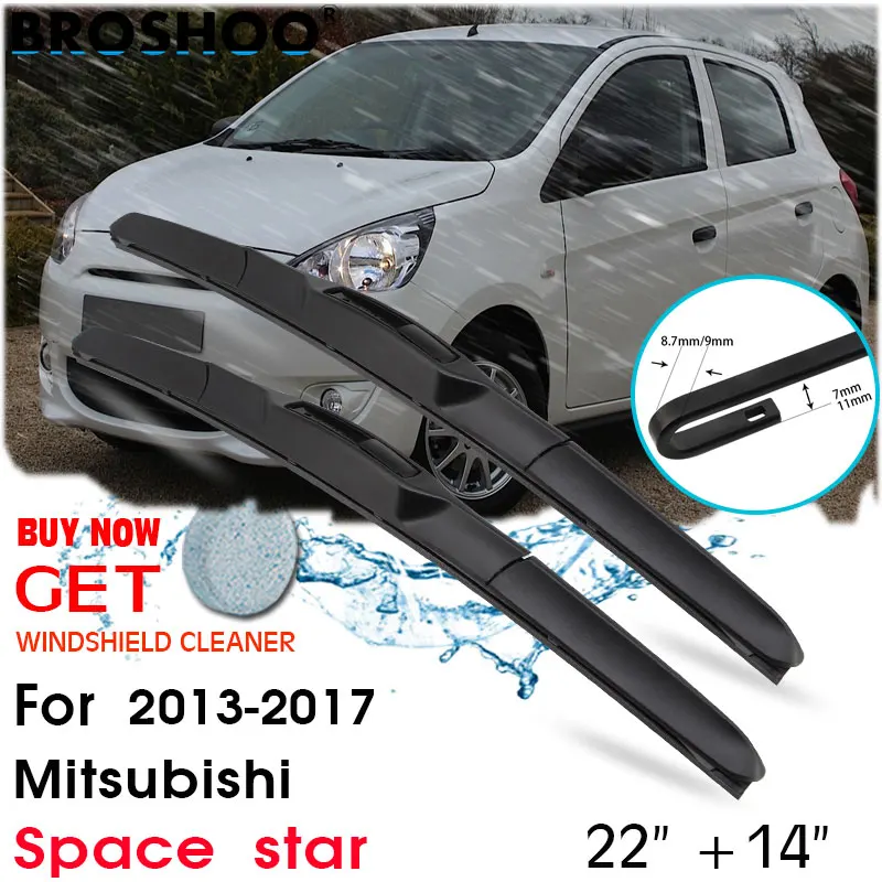 Автомобильная щетка стеклоочистителя для лобового стекла, дворники для лобового стекла, подходят для крючков и рычагов, аксессуары для Mitsubishi Space star 22 "+ 14" 2013-2017
