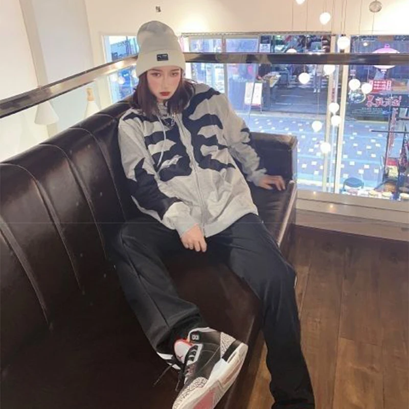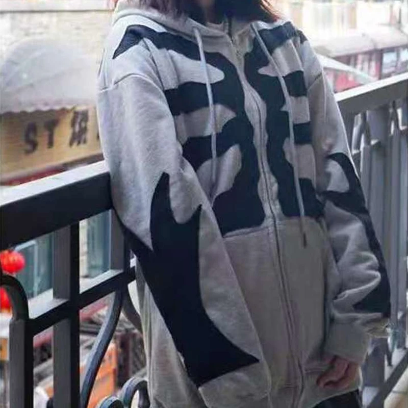 Свитшот Y2K мужской на молнии, готический Свитшот со скелетом, Худи...