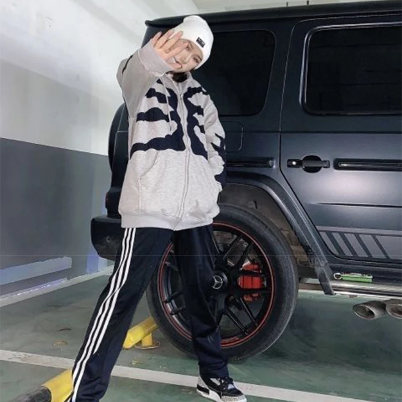 Толстовка Y2K в стиле Харадзюку на молнии, Мужская свободная толсто...