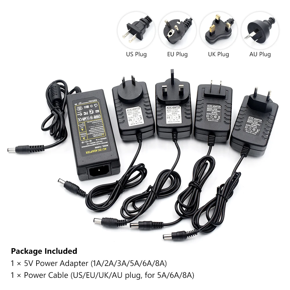 Адаптер переменногопостоянного тока YCDC, 5 В, 2 А, 100-240 В переменного тока, преобразователь, адаптер питания 5 В, 5, 5 x2, 1 мм, зарядное устройство Mini Micro Usb