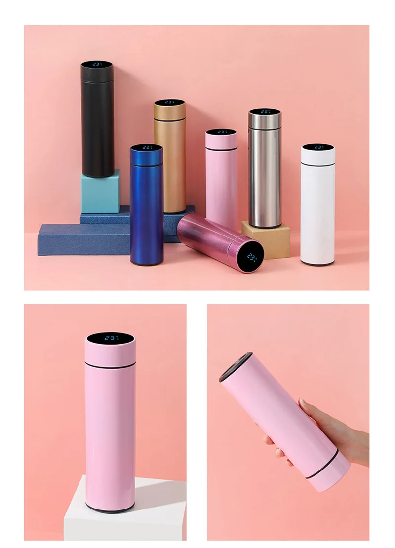 Умная изоляционная бутылка для воды со светодиодным цифровым дисплеем температуры, термокружки из нержавеющей стали, интеллектуальные изоляционные чашки 500 мл