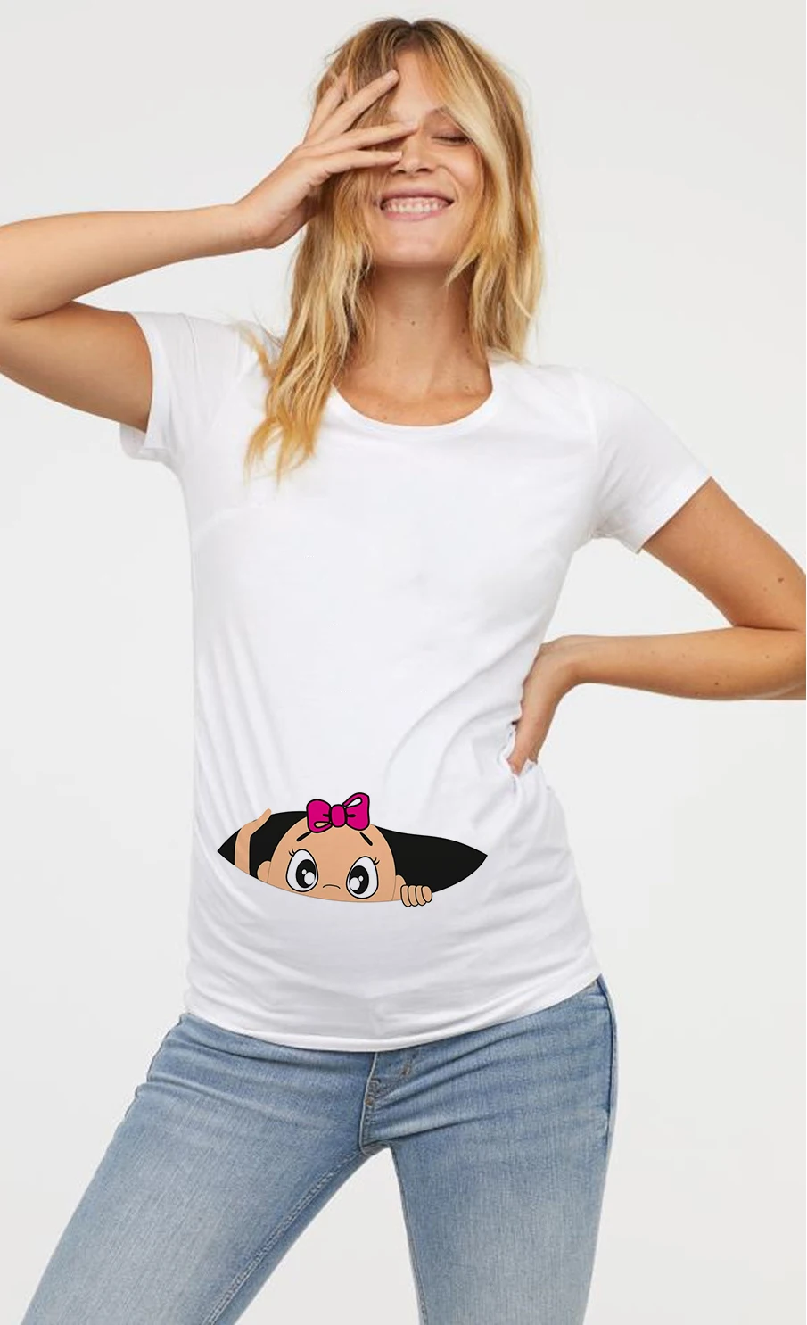 Женская одежда для беременных Футболка для беременных Забавный топ с милым принтом для малышей с круглым вырезом и коротким рукавом топы для беременных рубашка для беременных
