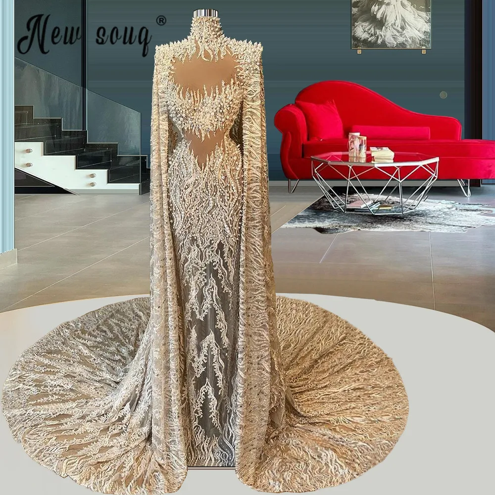Марокканские вечерние платья с высоким воротником и длинным рукавом...