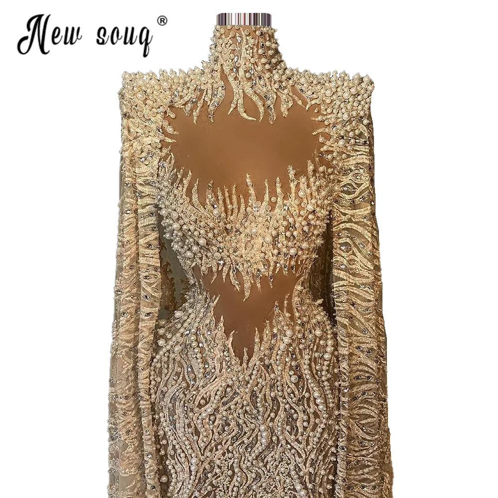 Мусульманский жемчуг с длинным рукавом свадебное платье 2021 африканские Роскошные Стразы Свадебные платья Русалка белый слоновая кость свадебное платье невесты