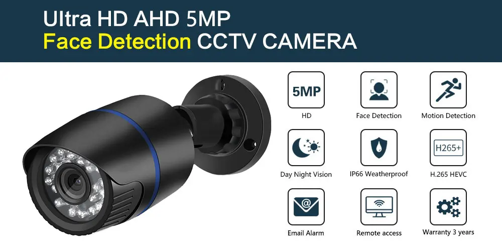 1, Ультра HD 5. Mp дисплей высокой четкости;2. Ультра HD 5.0MP AHD камера, IP66 водонепроницаемый, подходит для внутреннего и наружного использования; Надежная Домашняя безопасность;3. Улучшенное H.265 Сжатие видео, подключи и работай, простота установки;4. Поддержка распознавания лица, записи лица, воспроизведения лица, обеспечивает ультра высокое разрешение видео наблюдения, обеспечивая максимальную детализацию и четкость доступны;5. Поддержка IR-CUT переключателя двойного фильтра, днем и ночью для достижения мониторинга, цвет не является частичным искажением цвета;6. Поддержка расстояния передачи составляет 500 метров, Ультра HD дневное ночное видение;7. Поддержка обнаружения движения, оповещения по электронной почте, воспроизведения видео,8. Поддержка Android,Iphone,Ipad, ПК, P2P просмотра;9, удаленный доступ в любом месте, в любое время;