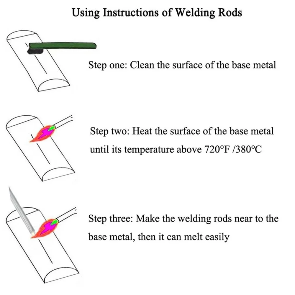 【Нет необходимости в паяльной пудре 】нет необходимости в использовании другого порошка флюса с алюминиевым сплавом в качестве сварочного сердечника и покрытия в качестве солевого основания.