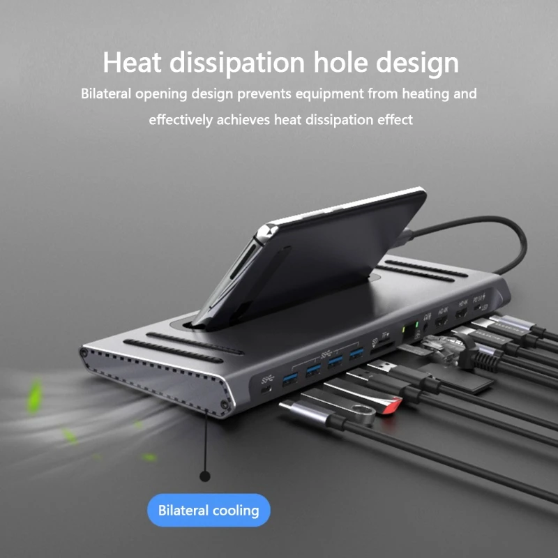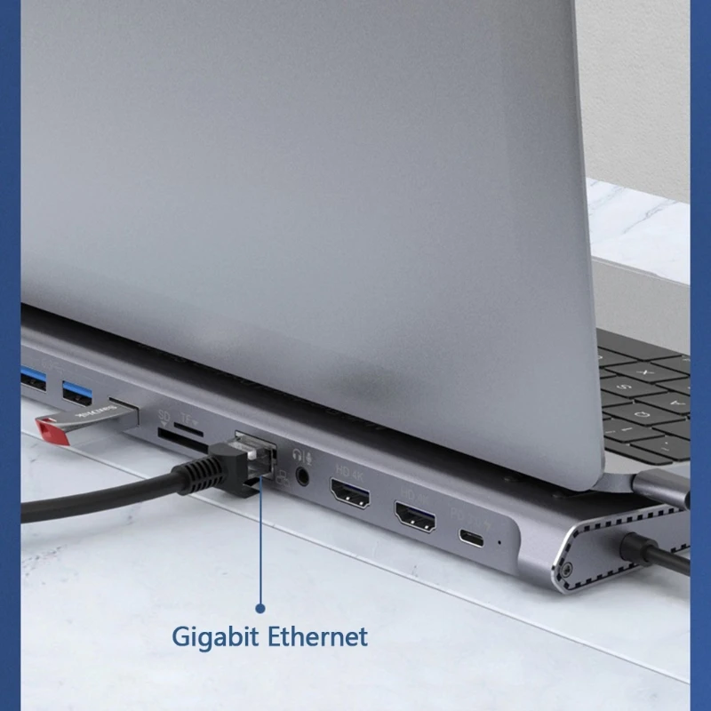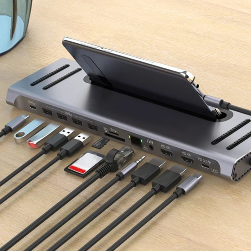 Док-станция USB C 12 в 1, док-станция с тройным дисплеем (HDMI, PD3.0, SD, TF, кардридер, гигабитная сеть, 4USB-порта), K5DB