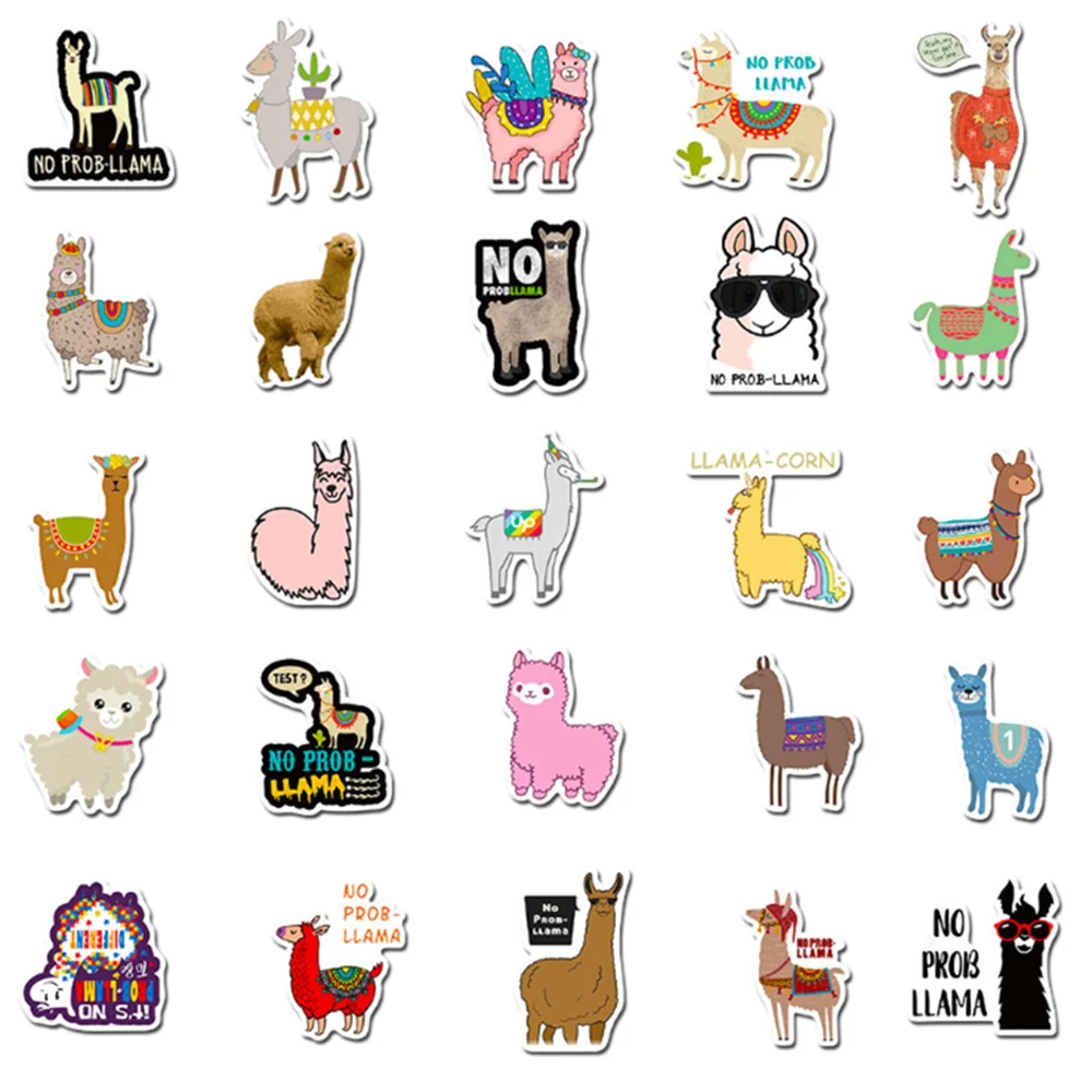 Милые наклейки с животными альпака, 50 шт., для стайлинга автомобил...
