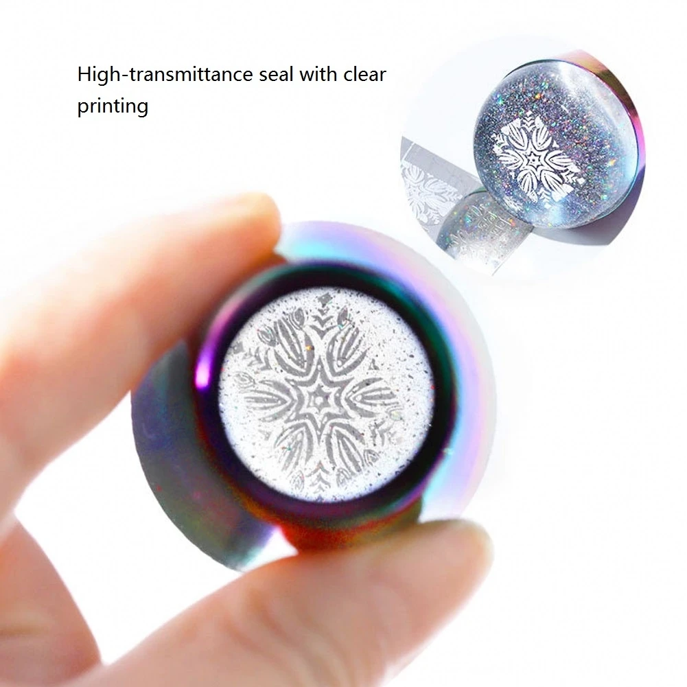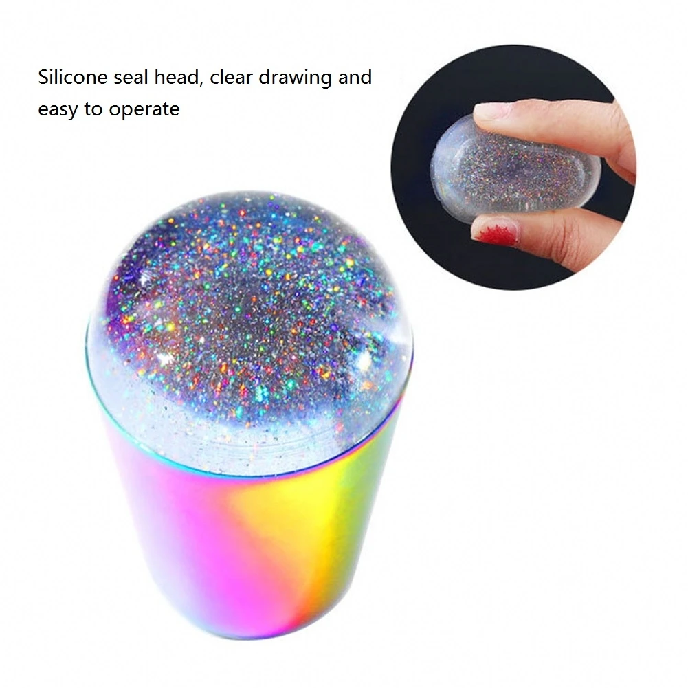 Блестящая голографическая головка для ногтей с радужной ручкой, прозрачный силиконовый штамп для пластина для стемпинга для нейл-арта инструментов для дизайна ногтей