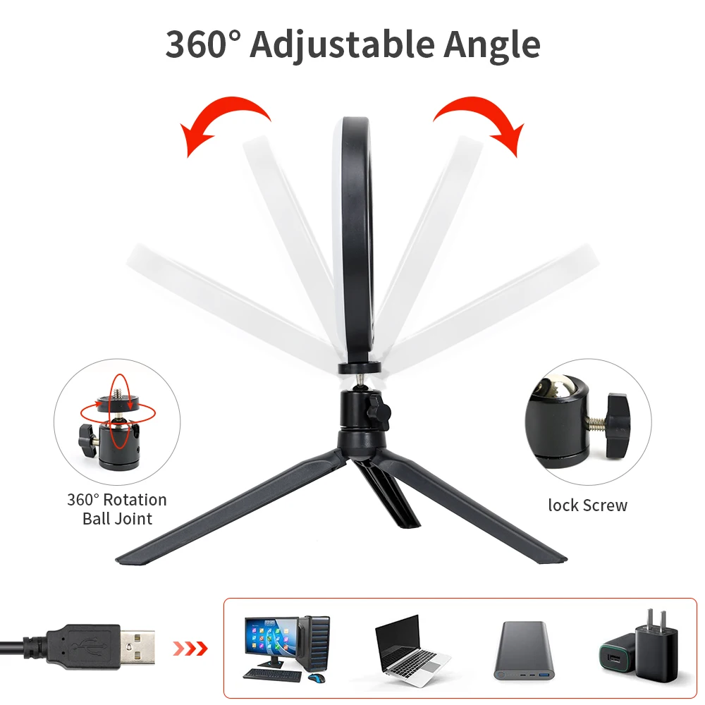 Питание от Usb, наш кольцевой светильник может быть подключен к usb-портам, блоку питания, ноутбукам, компьютеру и т. д.