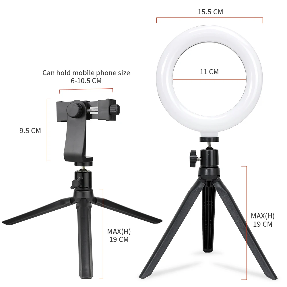 Наш кольцевой светильник может добавить достаточно светильник к вашему лицу или изделиям при записи видео, сделать ваши линии лица более стереоскопическими и ваши детали продукта более четкими. Больше людей хотели бы посмотреть ваши видео и стать вашими поклонниками.