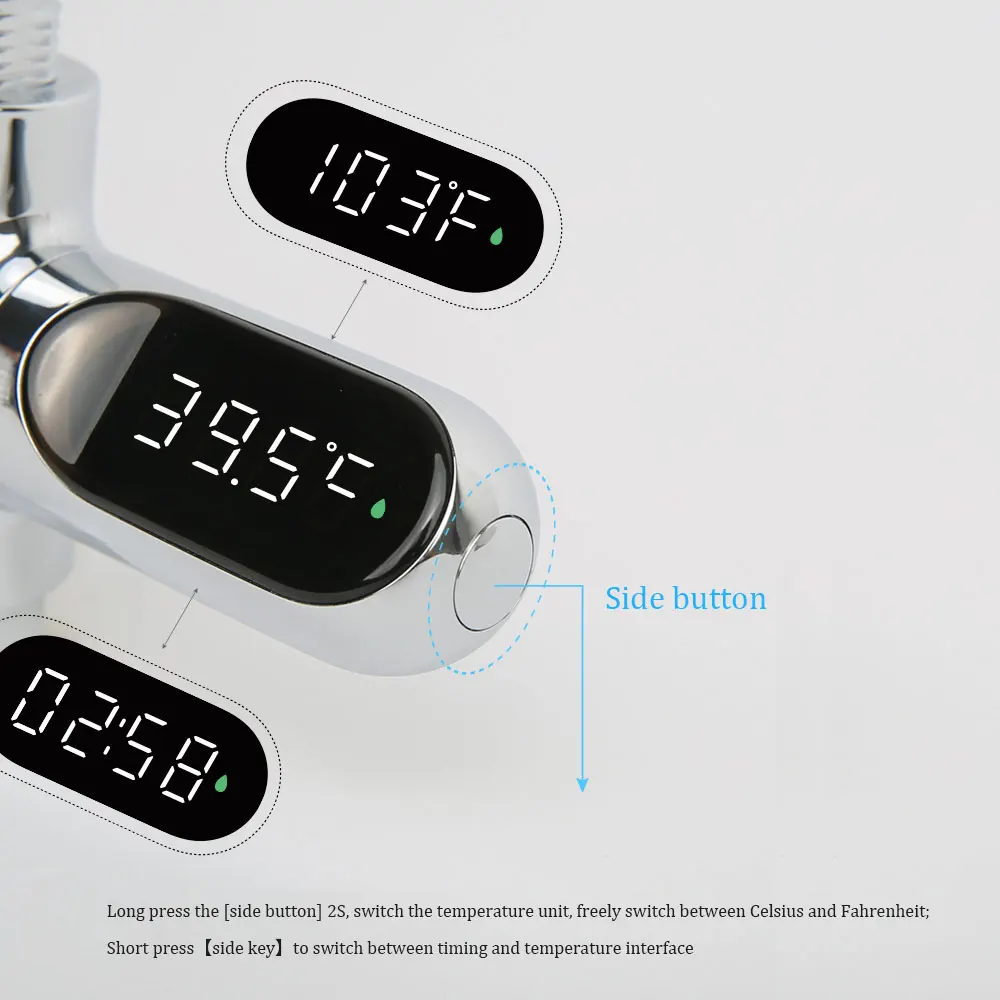 1. Встроенный высокоточный датчик температуры, обеспечивая 0 ~ 100 °C диапазон измерения и ± 0,5 °C точность. Выбор дисплея по Цельсию/Фаренгейту.2,1/2 дюйма гайка легко Установка, совместим с большинством оборудование для душа, простота установки без каких-либо инструментов.3,360 ° вращающийся для лучшего просмотра, четкий светодиодный экран позволяет контролировать температуру душа в режиме реального времени.4. Нет необходимости в батарее или риска утечка питания. Встроенная маломасштабная Гидросистема для генерации тока автоматически отключается после отсутствия потока воды.5,3-Цвет индикатор светильник, так же экран отображает индикатор светильник (синий/зеленый красные) для того, чтобы помочь вам выбрать подходящий температура воды при стирке.6. Функция памяти: Встроенный чип памяти, отслеживающий время купания (до 99 часов и 59 минут).
