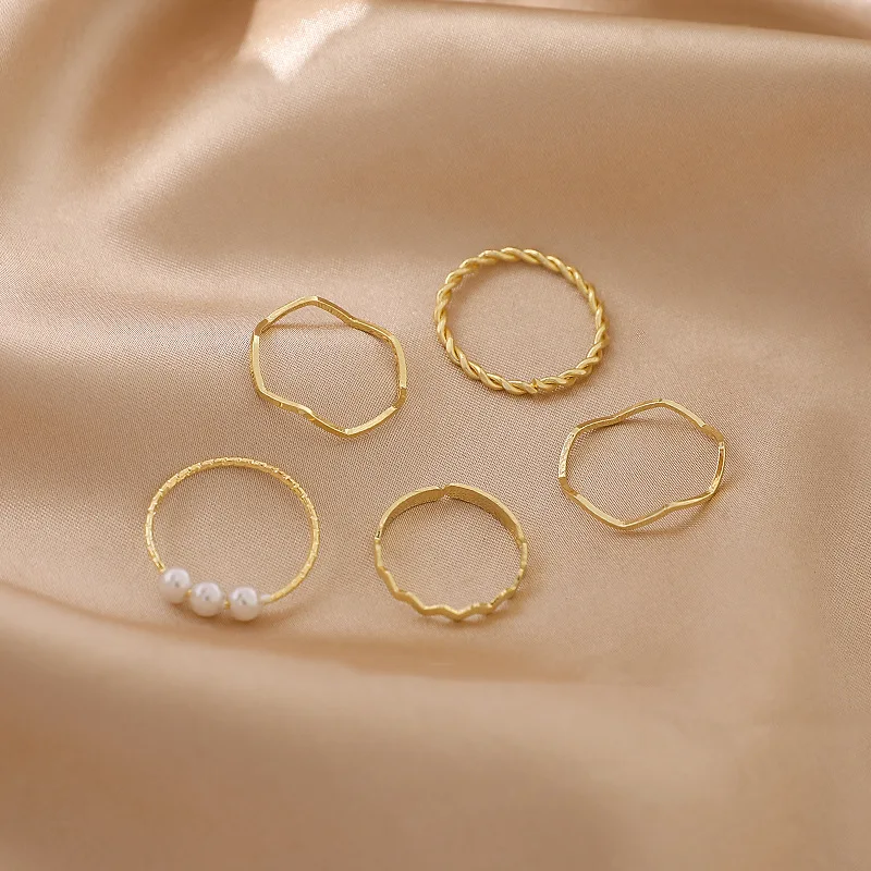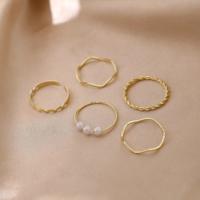 Кольцо женское на указательный палец, с искусственным жемчугом, набор из пяти предметов
