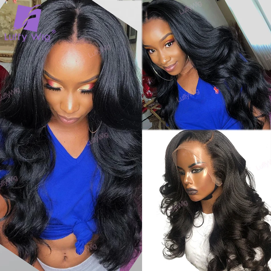 13x6 Yaki волнистые искусственные волосы, кружевной передний парик, бразильские, Реми, человеческие волосы, парики без клея, плотность 250, предварительно выщипанные для черных женщин Luffy