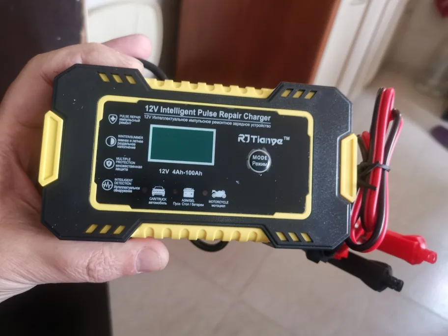 Item arrived promptly and was just as described. Bought it to charge my motorcycle battery and ended up needing it to charge my cars flat battery as well. Did an excellent job on both batteries.