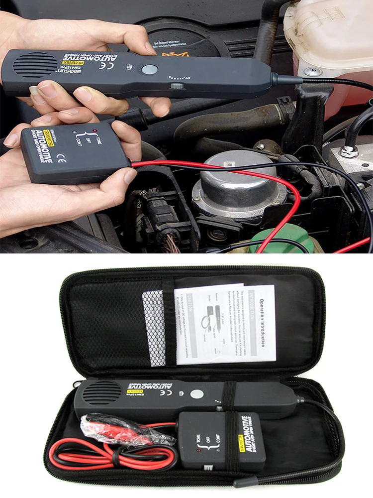 EM415PRO автомобильный кабель провода трекер короткого и открытого замыкания Finder Тестер автомобиля ремонт транспортного средства детектор Tracer 6-42 В постоянного токаОписание:EM415PRO обнаруживает и оповещает вас немедленно, где цепь открыта. Вы можете быстро и легко найти короткие цепи, открытые соединения, сломанные провода, утечки тока и даже трассировки проводов. Вы также можете найти проблемы с прерывистым замыканием путем сгибания проводов Или соединителями и прослушиванием для изменения тона приемника, позволяя вам общее отслеживание или определение местоположения проблемы. Он также показывает вам направление на короткое с его указателем направления, устраняя догадки. Этот профессиональный инструмент будет работать на всех видах цепей с напряжением от 6 до 42 вольт постоянного тока. Например, в автомобилях, грузовиках, тракторах, лодках, RVs и т. д. с широким диапазоном рабочего напряжения Один из 20 лучших инструментов на рынке КитаяБыстро и легко найти Короткие цепиЭкономьте время и увеличивайте свой доходСудите о продолжении кабелей или проводов.Отслеживайте кабели или провода и диагностируйте точку разрываПолучите сигнал тона на кабелях или проводах (телефонная линия)Указать состояние в рабочей телефонной линии (ясно, кольцо, занят)Отправьте один сплошной тон или двойной переменный тон к объектным кабелям или проводам. Особенности товараПитание: две батареи 9 В (не входят в посылка)Ширина изделия: 4 смТип материала: спиральная стальВысота изделия: 15 ДюймовТип изделия: электрические тестовые приборы и Тестовые проводаДлина изделия: 17 смОсобенности: короткий кабель finderО товареЭтот инструмент предназначен для идентификации и отслеживания проводов или кабелей, не повреждая изоляцию. Вы также можете использовать его для проверки короткого замыкания и открытия цепи и так далее. В инструменте есть отправитель и приемник.Параметры1. Отслеживание проводов2. Проверка короткого замыкания3. Обнаружение открытого замыкания4, идентификация проводаФункция* Отслеживание проводов возможно даже внутри пряди, проводников, за панелями, под коврами, обивкой и т. д.* Простота в использовании: Просто подключите передатчик в серии с цепи или провода под тестом, (i. Е.: в месте выдувного предохранителя, через соединитель, в серии с открытым проводом, светильник с гнездом лампы и т. д.), И сканирование цепи/провода с помощью гибкого зонда для отслеживания неисправности* 42 в готов: для использования в новом производстве транспортных средств с смешанными или одиночными 42 вольтовыми системами* Работает от напряжения постоянного тока от 6 до 42 вольт* Внутренняя защита от скачков напряжения и перегрузок* 7 "гибкий зонд позволяет достигать проводов в перегруженных местах* Светодиоды передатчика и приемника показывают условия открытия или короткого замыкания* Регулируемая чувствительность для всех ситуаций отслеживания* Не требуется пирсинг провода, бесконтактная технология!Как использовать зонд?Зонд приемника построен из спиральной стали и может быть согнут по мере необходимости, для того, чтобы достичь проводов в ongested или трудных областях. В зависимости от характеристик цепи и настроек чувствительности Зонд будет отображать сигнал от провода в диапазоне позиций. Однако для оптимального диапазона Наконечник Зонда приемника (черная крыш