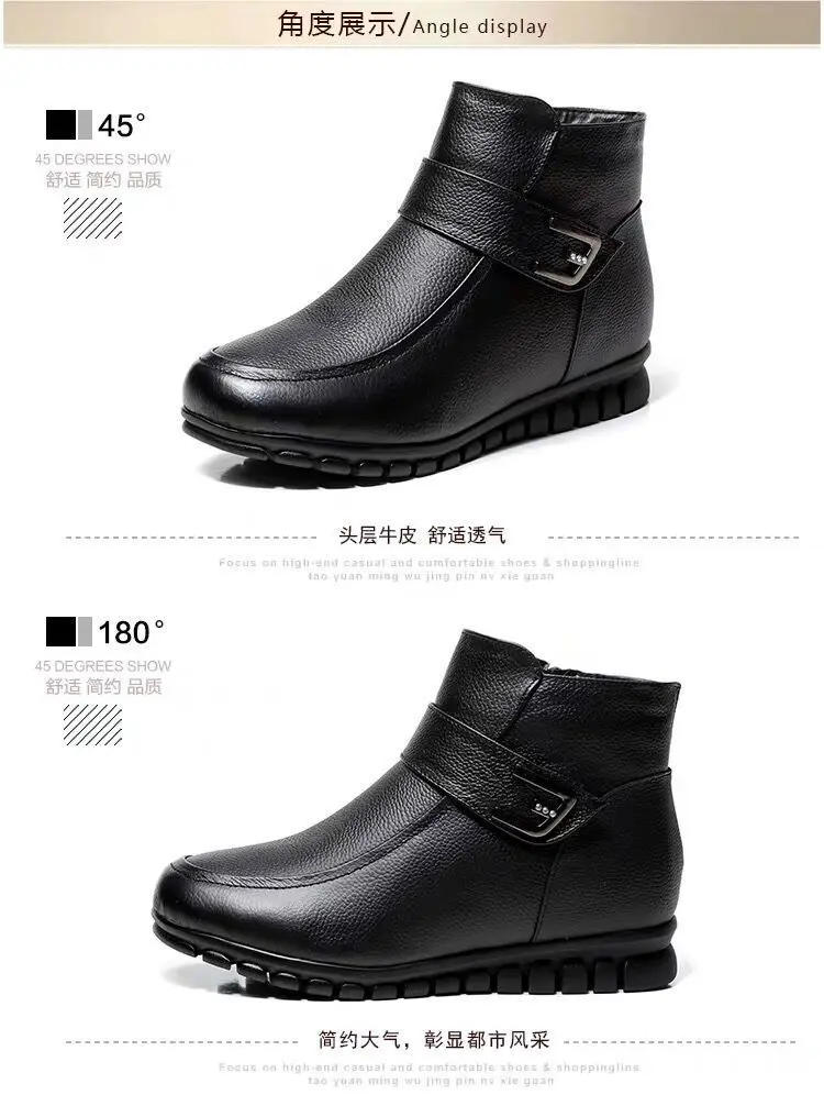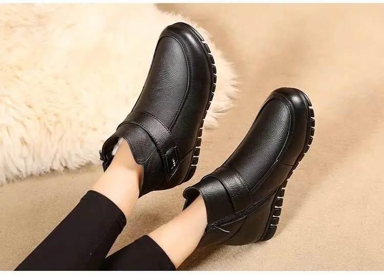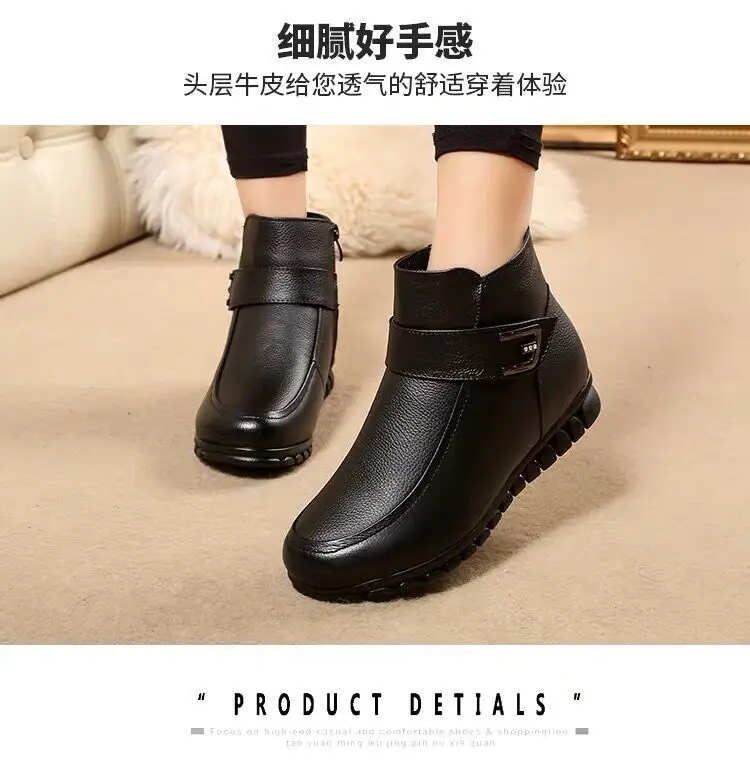 Женские кожаные ботинки на липучке, черные теплые Нескользящие ботильоны с утолщенным плюшем, обувь на меху, размеры 41, 42, для зимы, 2021