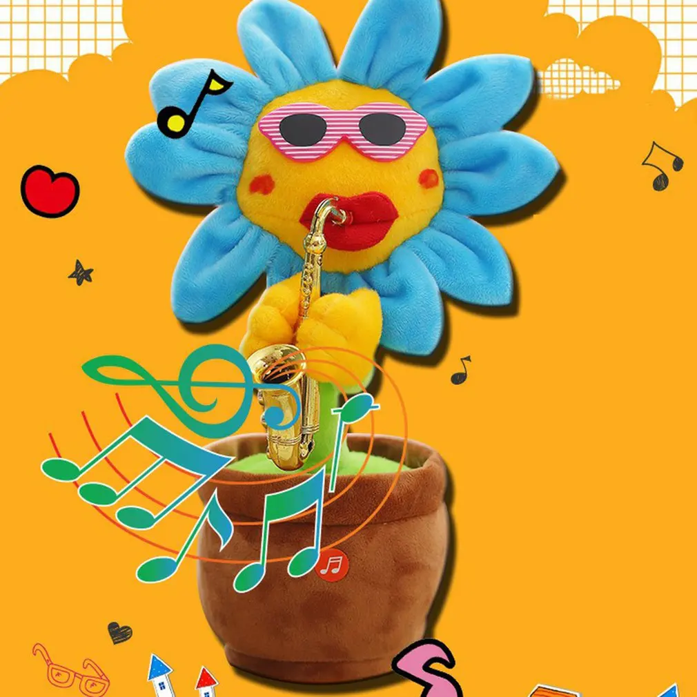 Электрические игрушки, поющие и танцующие цветы, саксофон, Подсолнухи, сетка, знаменитости, Забавная детская игрушка для девочек, полностью заполненный полипропилен, хлопок