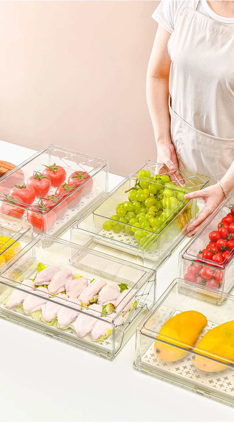 Контейнер для хранения фруктов, овощей, яиц, контейнер для хранения в холодильнике, прозрачный ящик для экономии пространства в холодильнике, пластиковые контейнеры