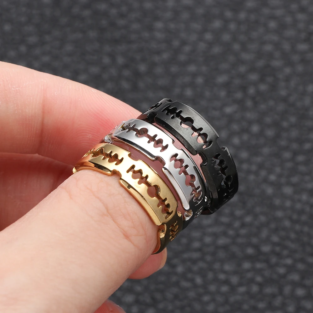 Винтажное кольцо с лезвиями в стиле хип-хоп из нержавеющей стали, модное кольцо в стиле панк-рок, регулируемая бижутерия для мужчин и женщин