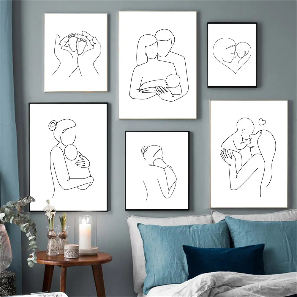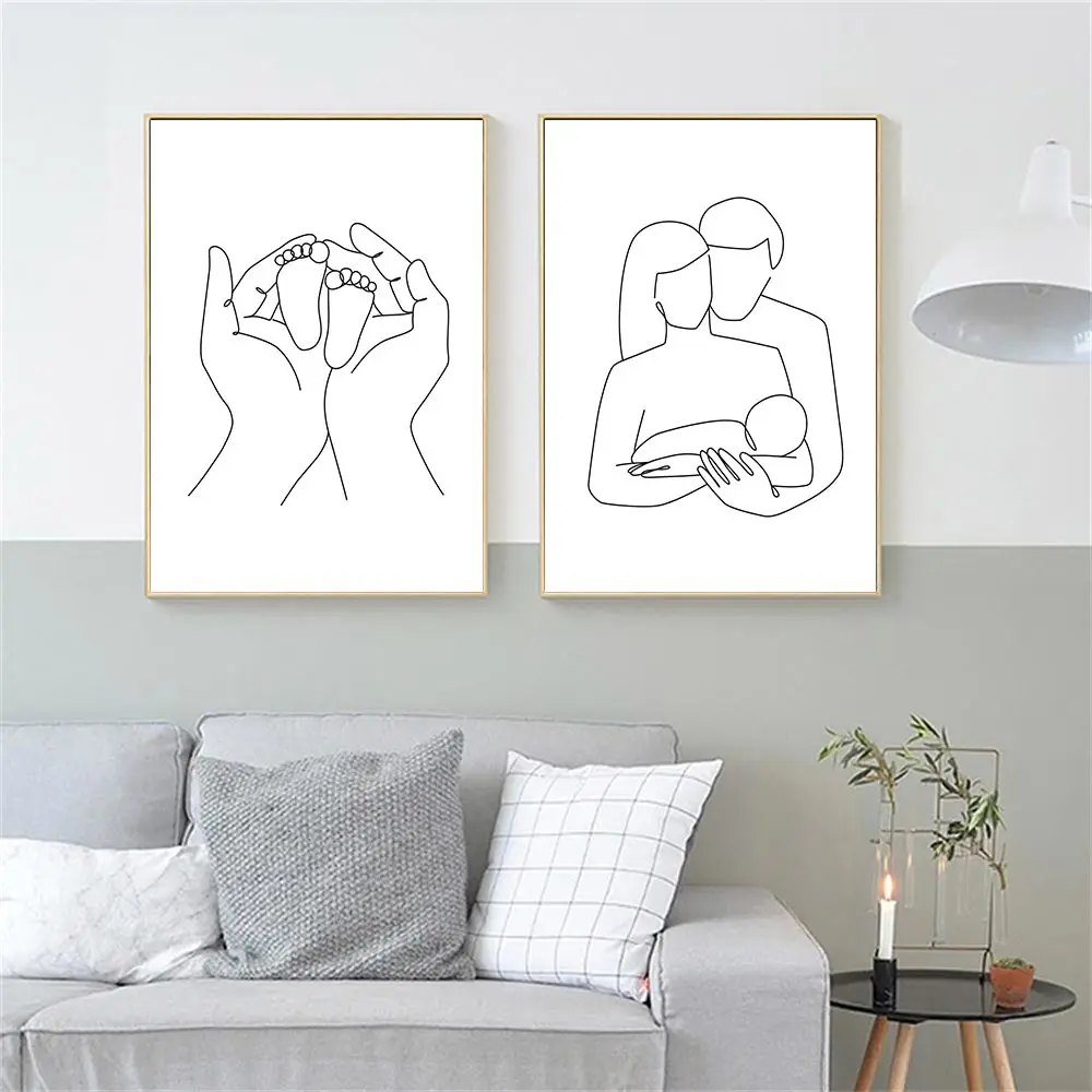 Абстрактная Настенная картина для мамы и ребенка, плакат с сердцем, Художественная печать, холст с удержанием ног, Минималистичная картина, декор для гостиной