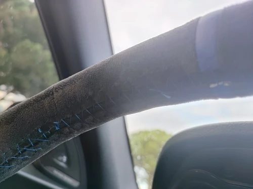 Ручная прострочка мягкая черная замша красный маркер чехол рулевого...