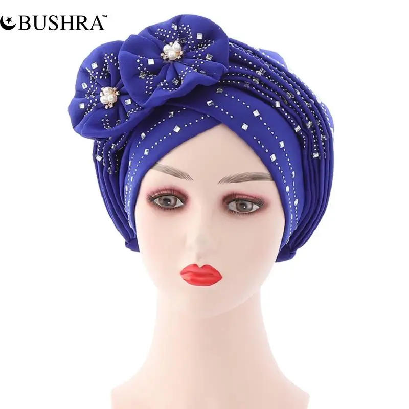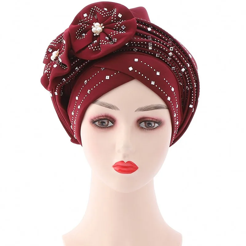 Африканские тюрбаны женская шляпа в стиле Auto Gele, многослойная палка, бриллиантовый цветок базин, богатый Дашики, Африканский головной убор, головной убор, хиджабы