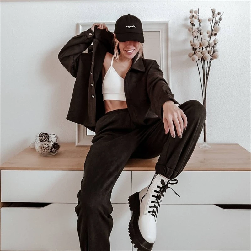 Женский бархатный пиджак и брюки, Свободное пальто с открытыми плечами, однобортный спортивный костюм, Модный комбинезон с эластичной талией