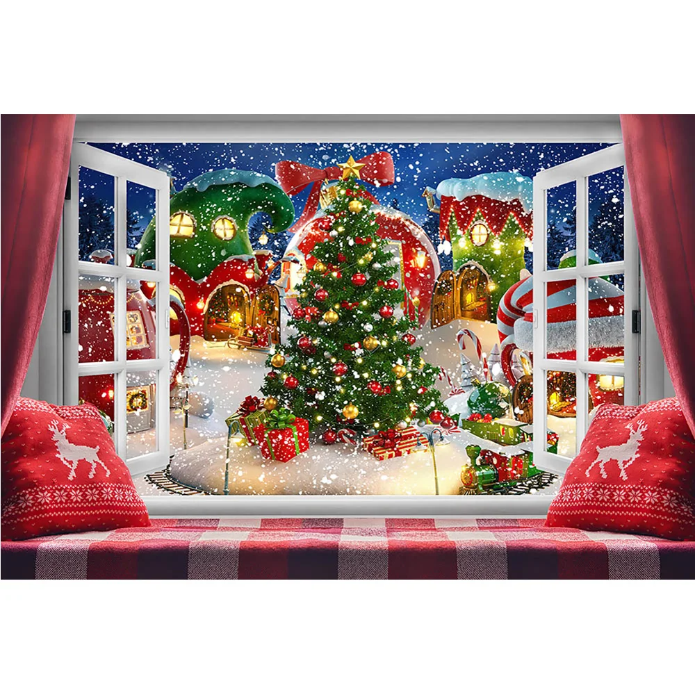 Винтажный Рождественский фон для фотосъемки с окнами Ретро Рождеств...