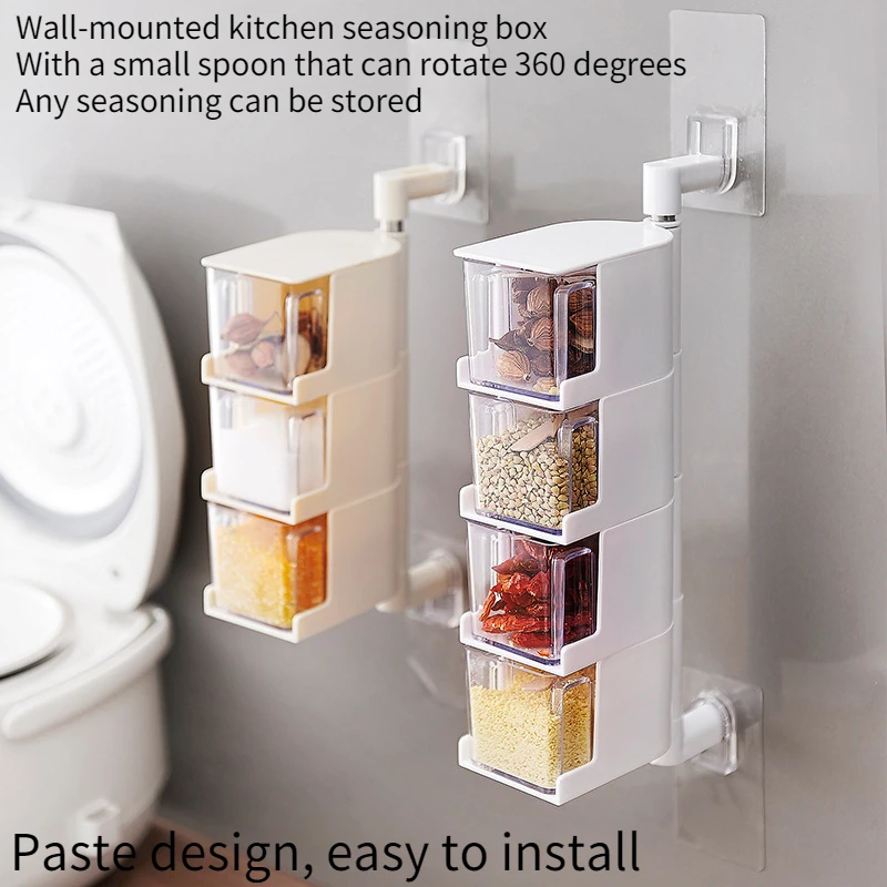 Настенная подставка для специй, многоярусная сахарница с ложкой, хранение кухонной утвари шт.набор, солонка, контейнер для приправы