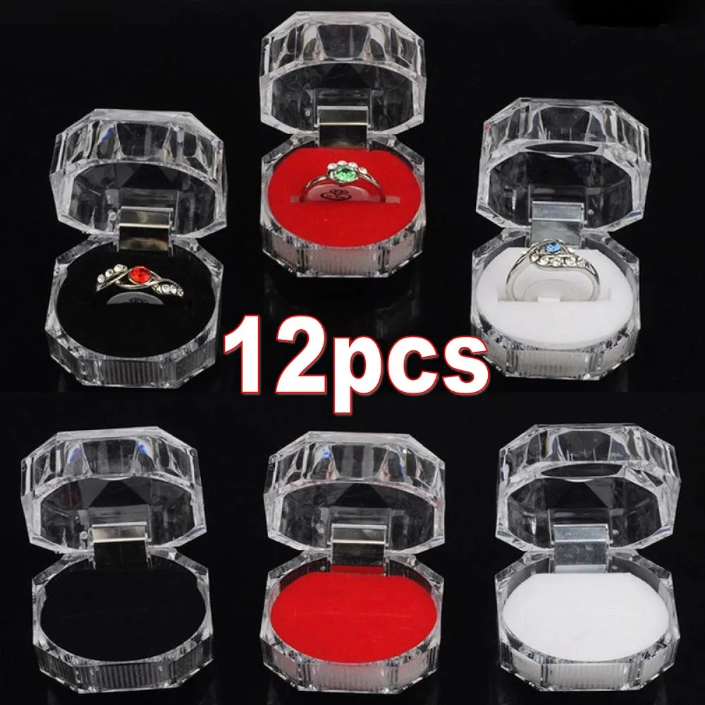 12 шт., прозрачная акриловая коробка для сережек и колец