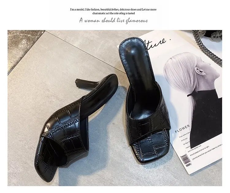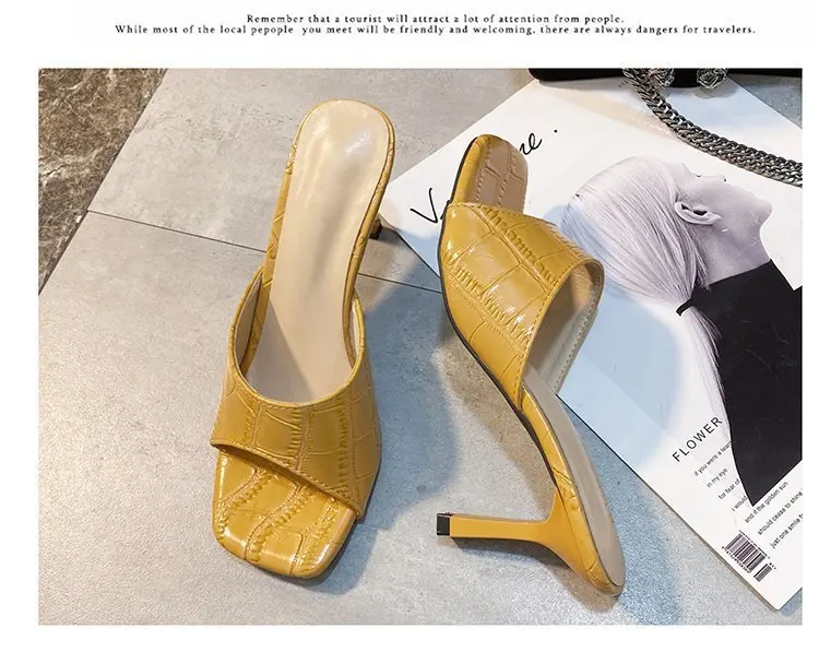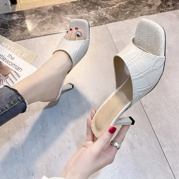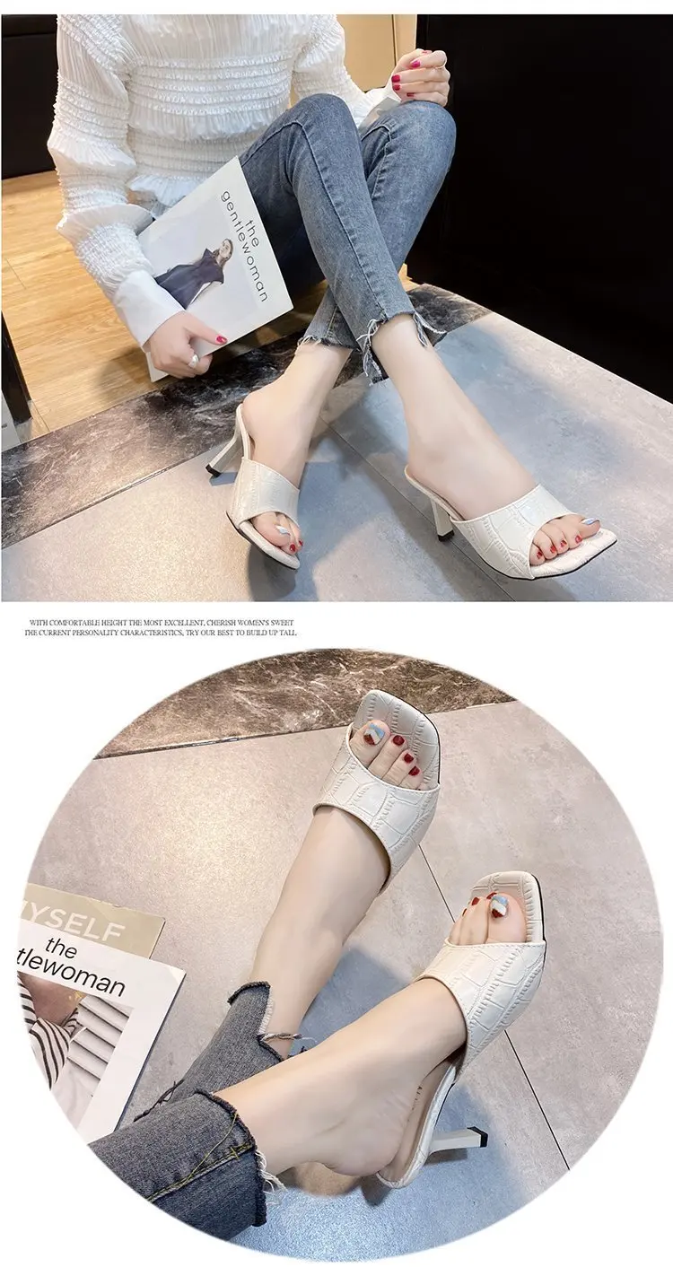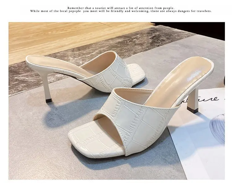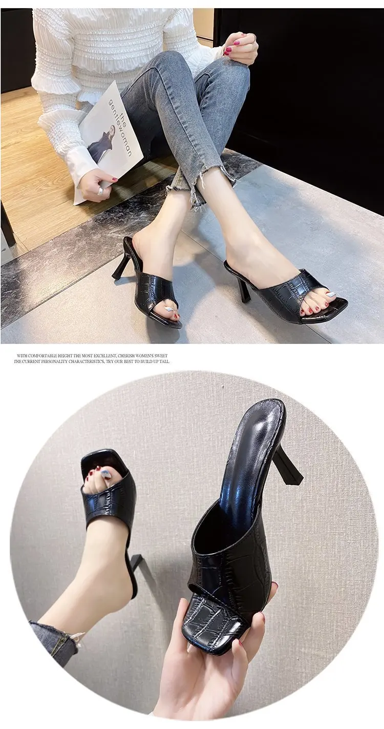Шлепанцы женские с квадратным носком, высокий каблук-шпилька, сандалии с открытым носком, лето 2021