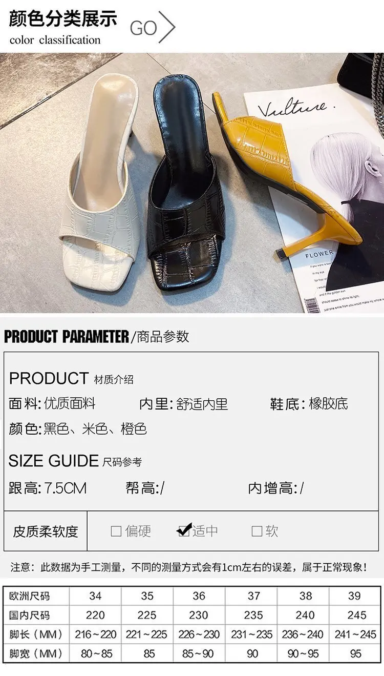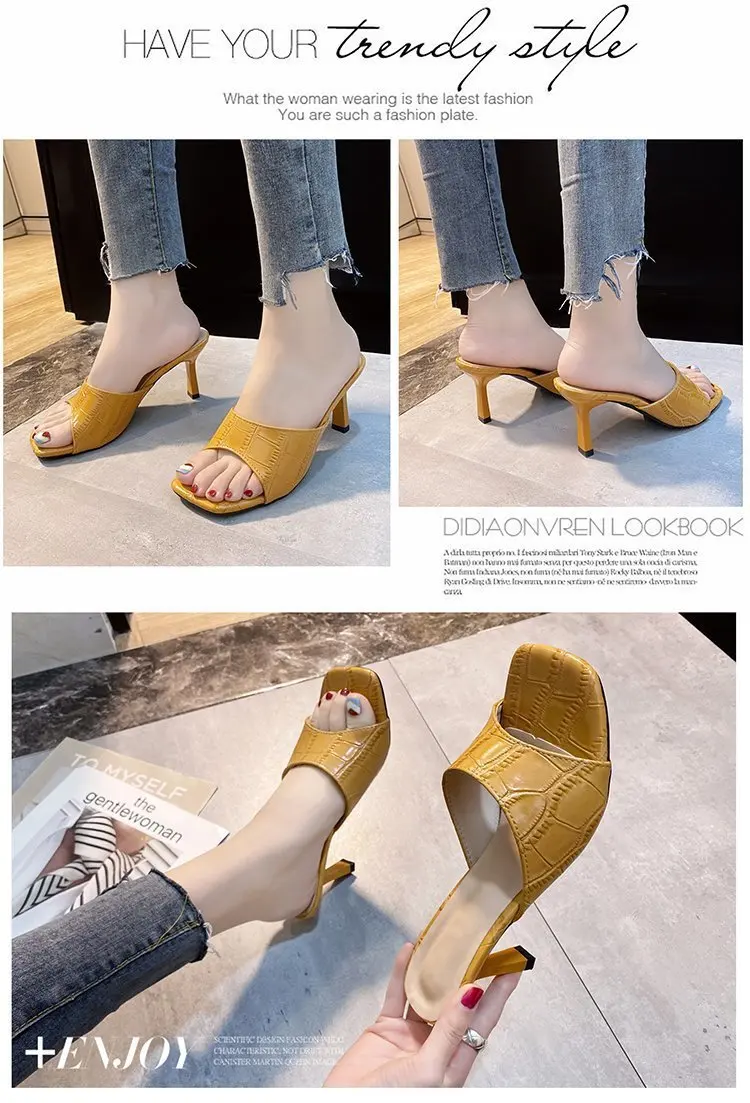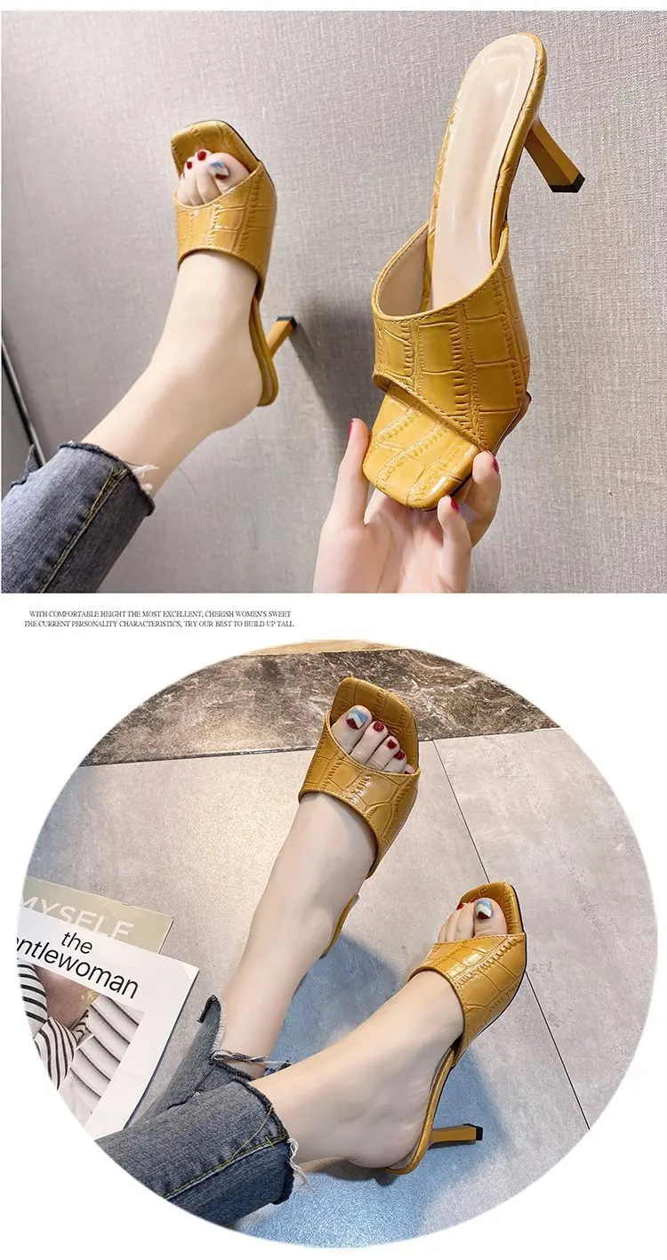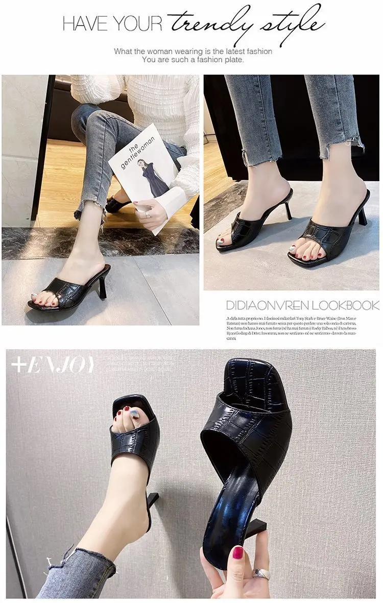 Шлепанцы женские с квадратным носком, высокий каблук-шпилька, сандалии с открытым носком, лето 2021