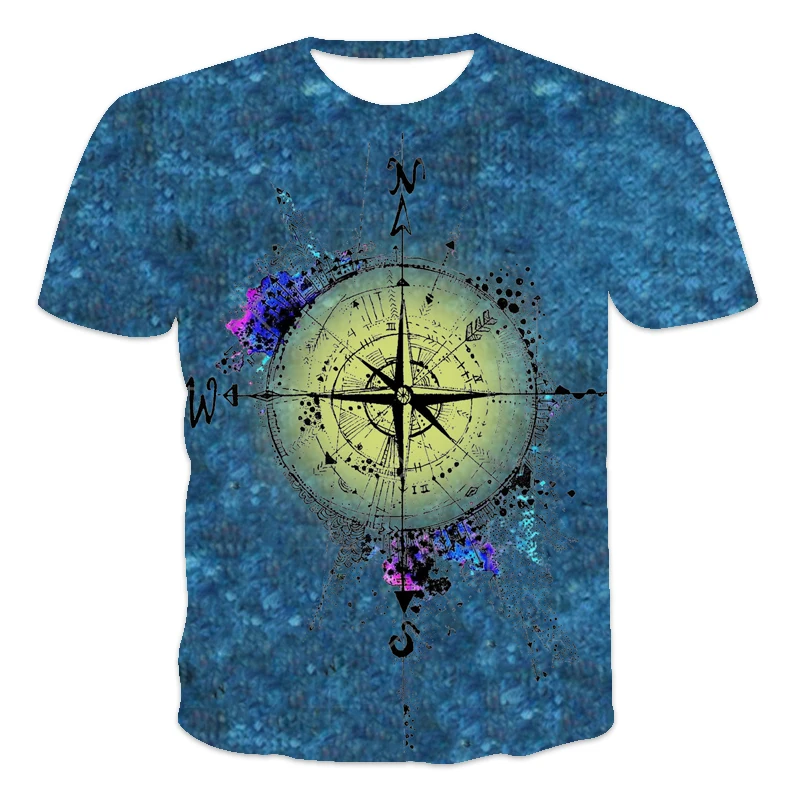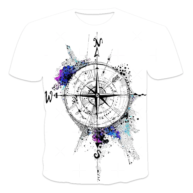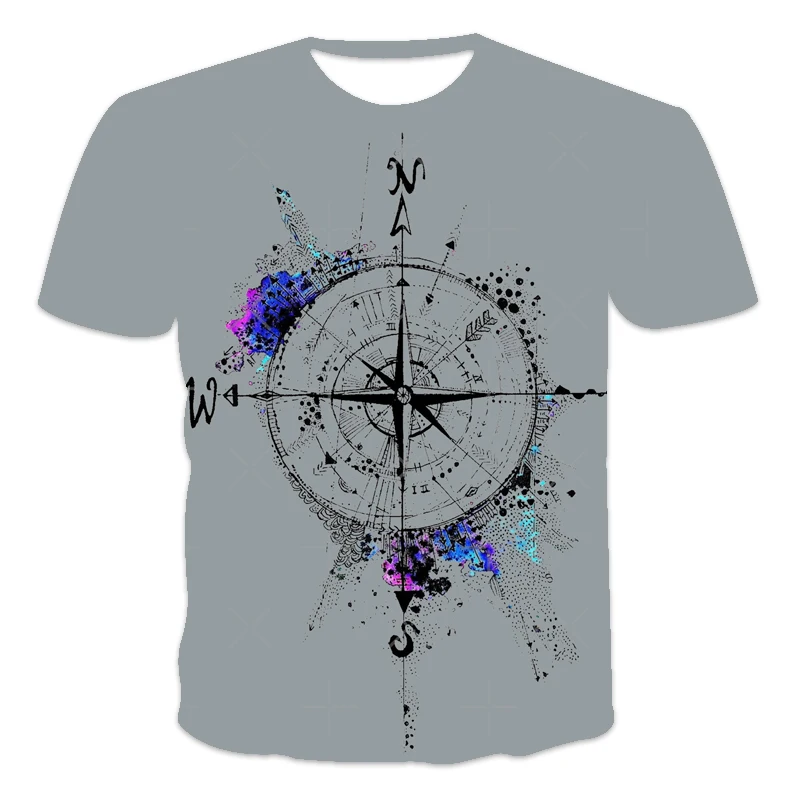 Мужская летняя футболка с 3D-принтом, с компасом и круглым вырезом