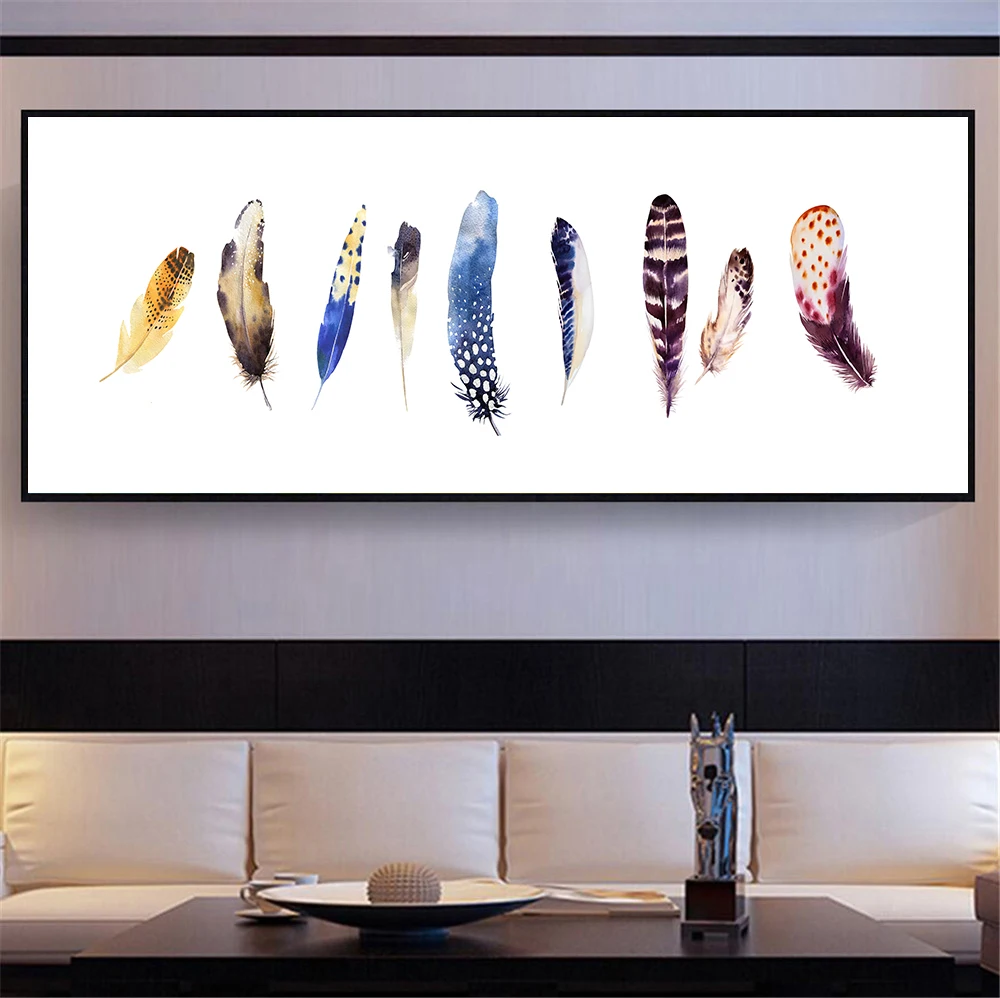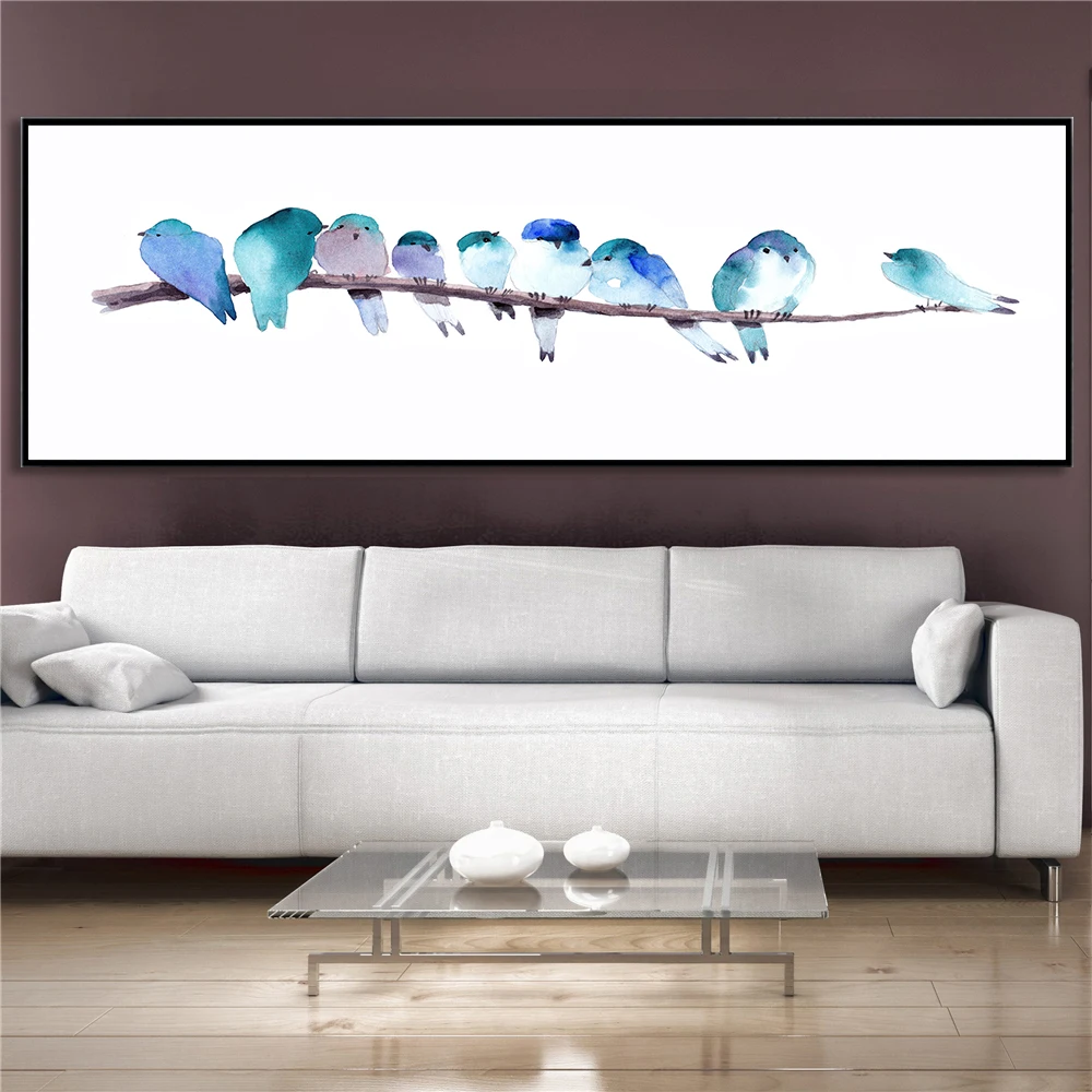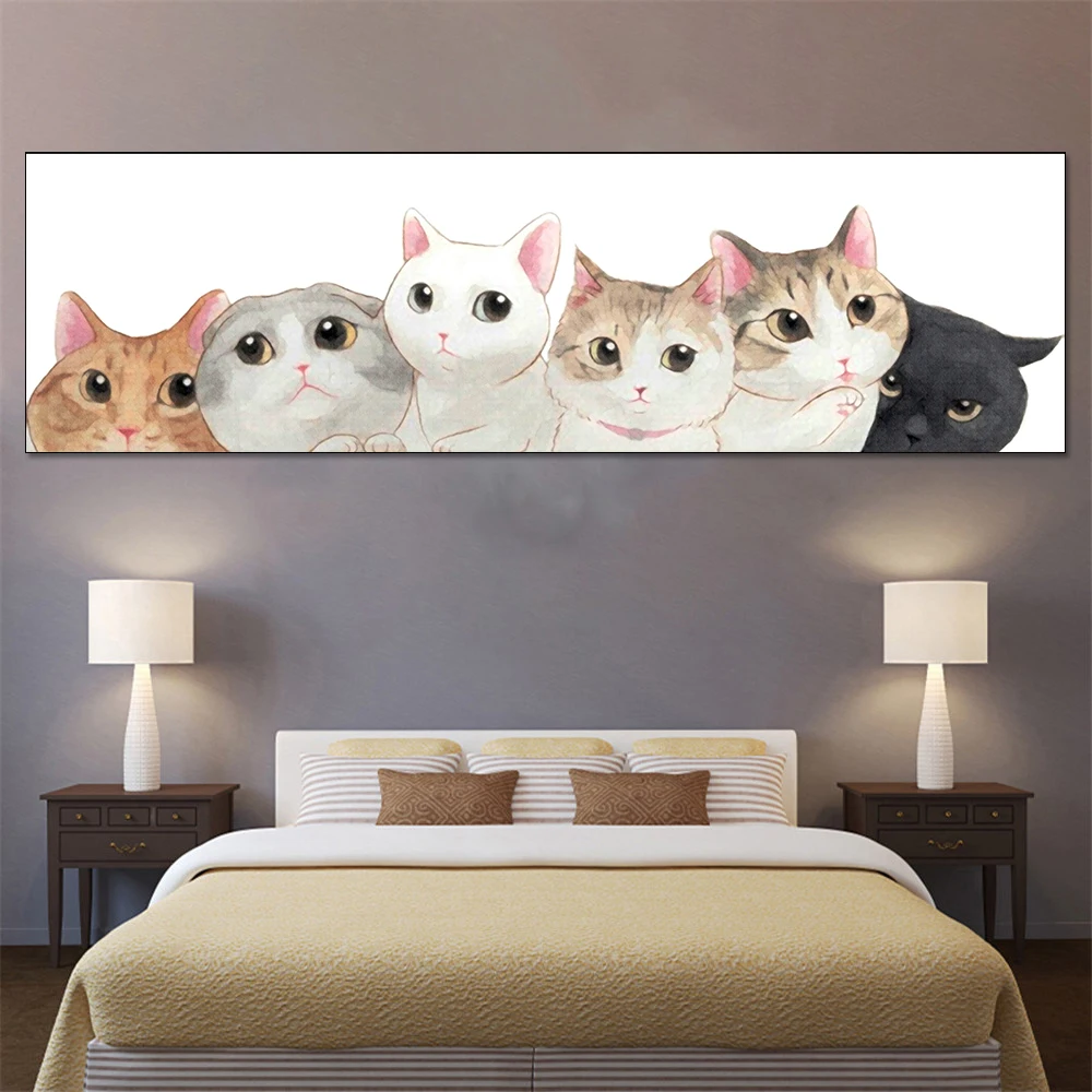 Декоративная живопись Птица в скандинавском стиле, маленькая кошка, украшение для дома в детскую комнату, горизонтальный длинный рисунок