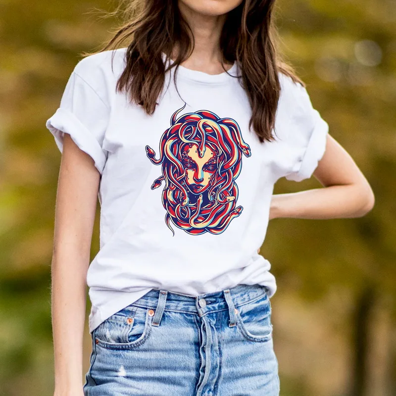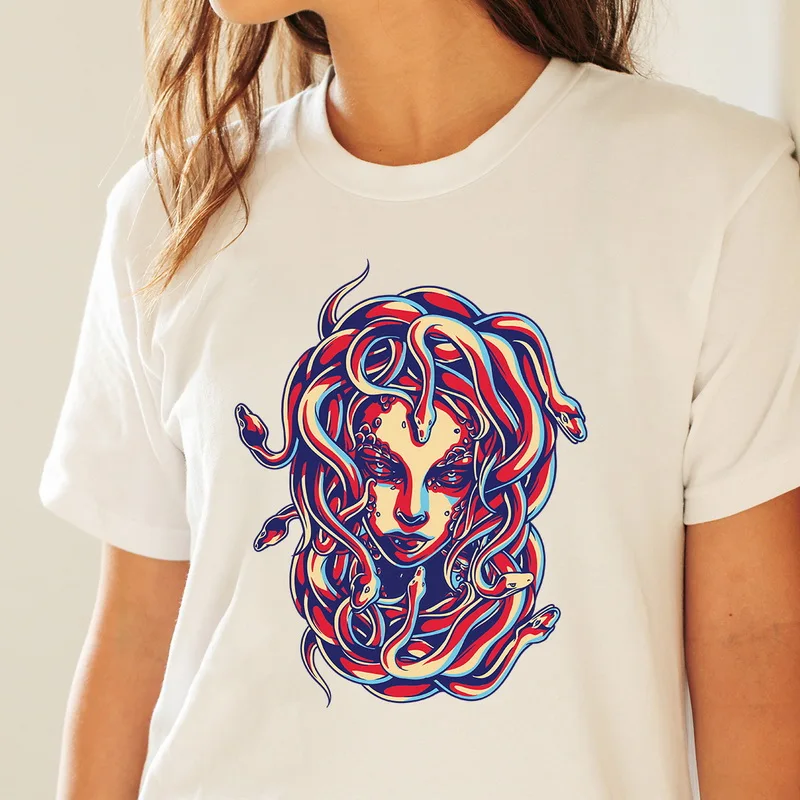 Футболка BLINGPAW с графическим принтом Medusa, Футболки унисекс из чистого хлопка, летние футболки, женские топы 2021, женские футболки