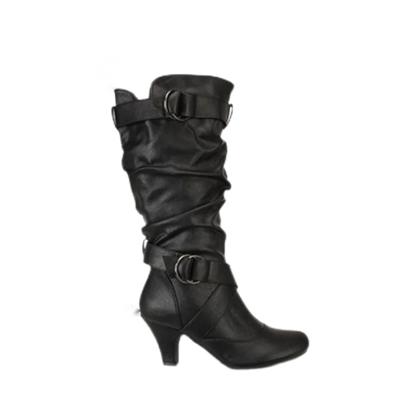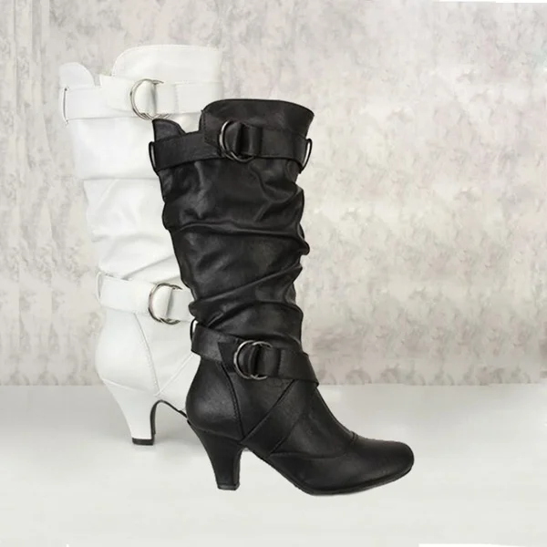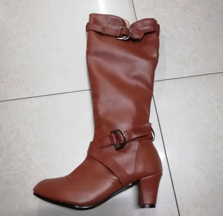 Женские зимние сапоги 2021, модные сексуальные женские сапоги до середины икры, короткие сапоги на высоком каблуке с пряжкой, сапоги для снега, женские сапоги
