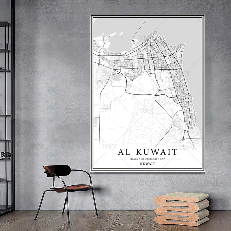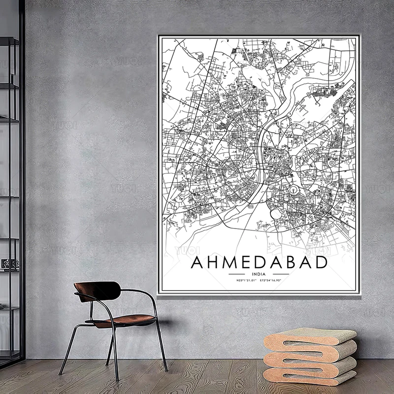 Черно-белый холщовый постер с принтом карты города стальбум, Соврем...