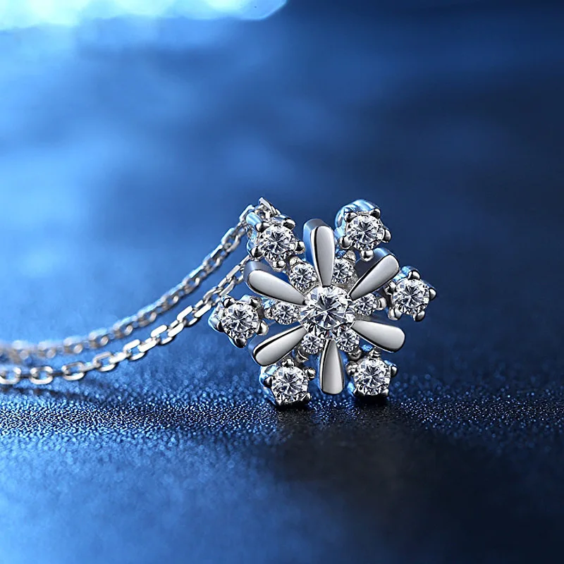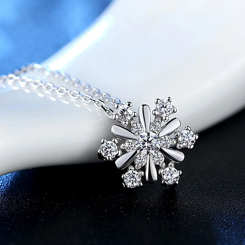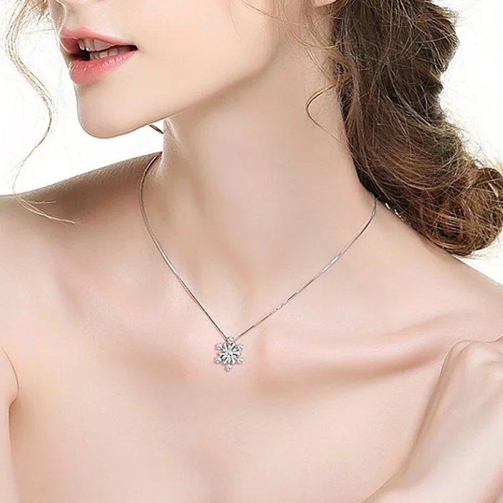 Женское ожерелье с подвеской-снежинкой, серебряное ожерелье с цирконом