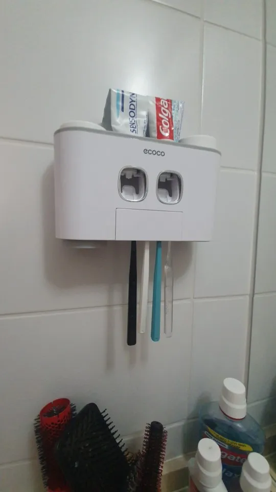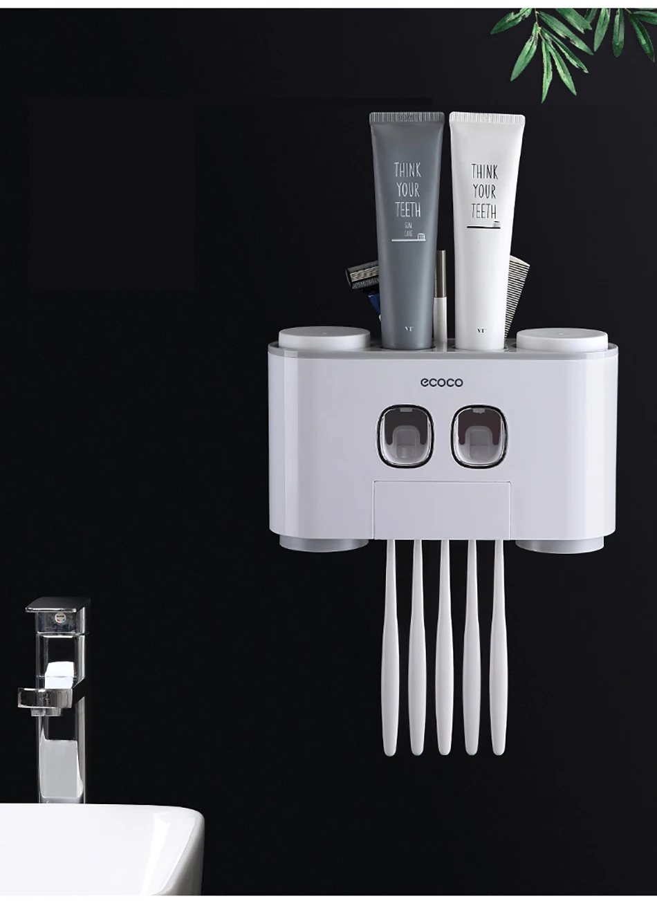 Автоматический диспенсер для зубной пасты Ecoco, настенный держатель для зубных щеток, чашка для зубной пасты, аксессуары для хранения в ванной комнате